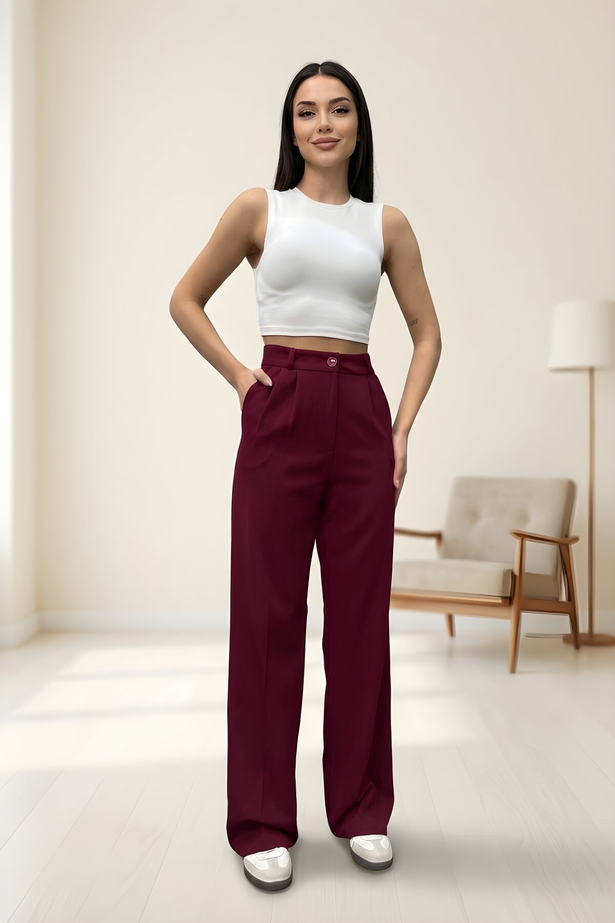RAWEA FASHİONBordo Dabıl Kumaş Palazzo Tesettür Pantolon
