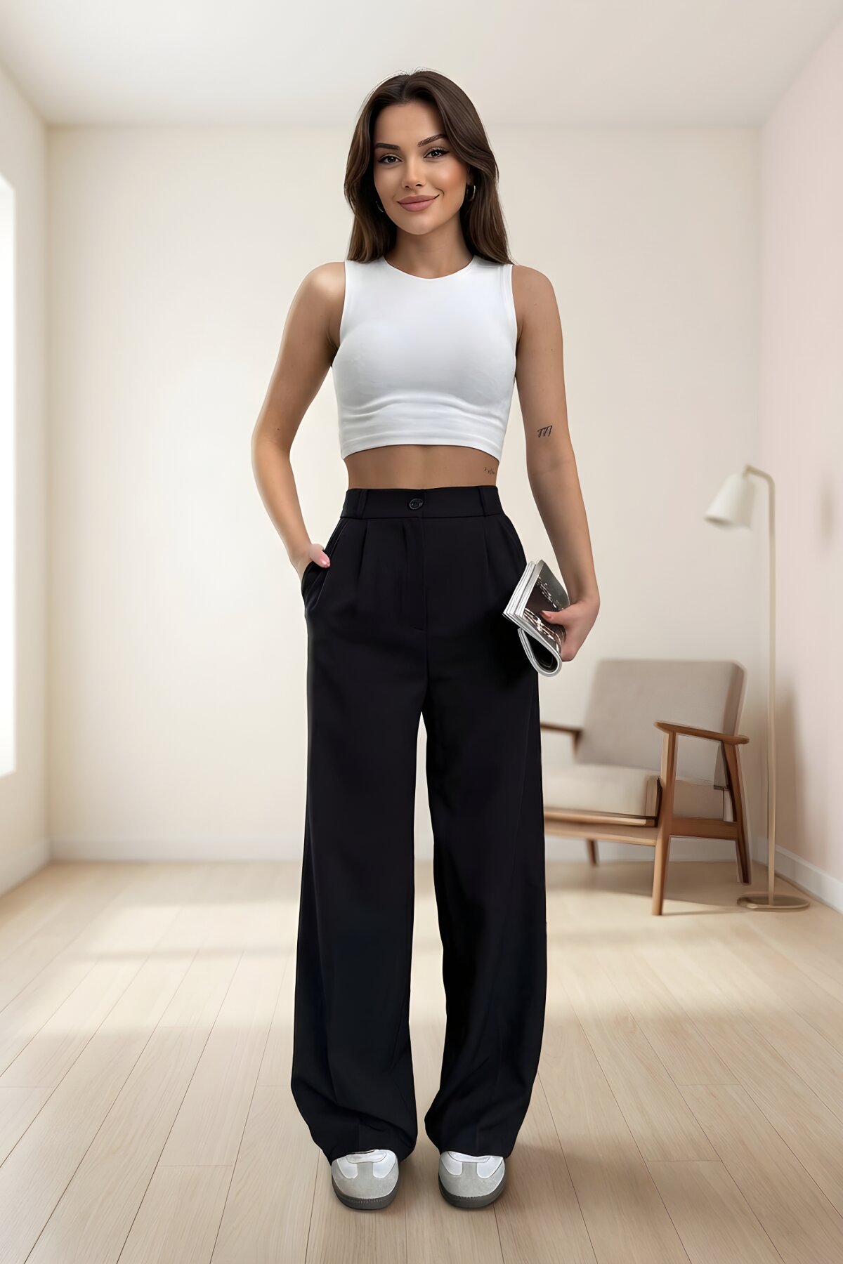 RAWEA FASHİONSiyah Yüksek Bel Palazzo Geniş Paça Şık ve Rahat Kesim Pantolon