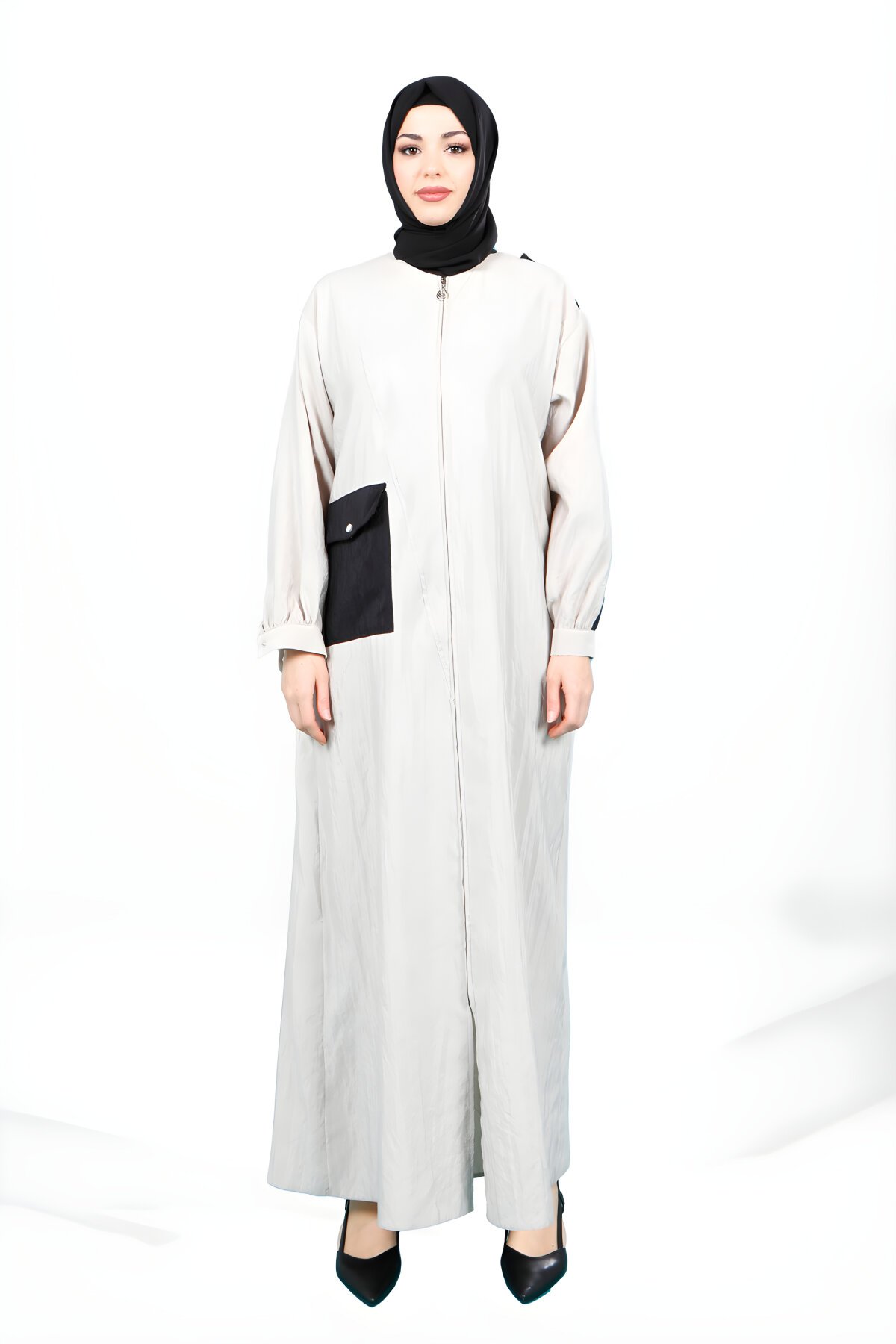 Astarsız, ürün fermuarlı yan kısmı cepli ve cep garnili cebinde çıtçıt olan spor tesettür ferace.
