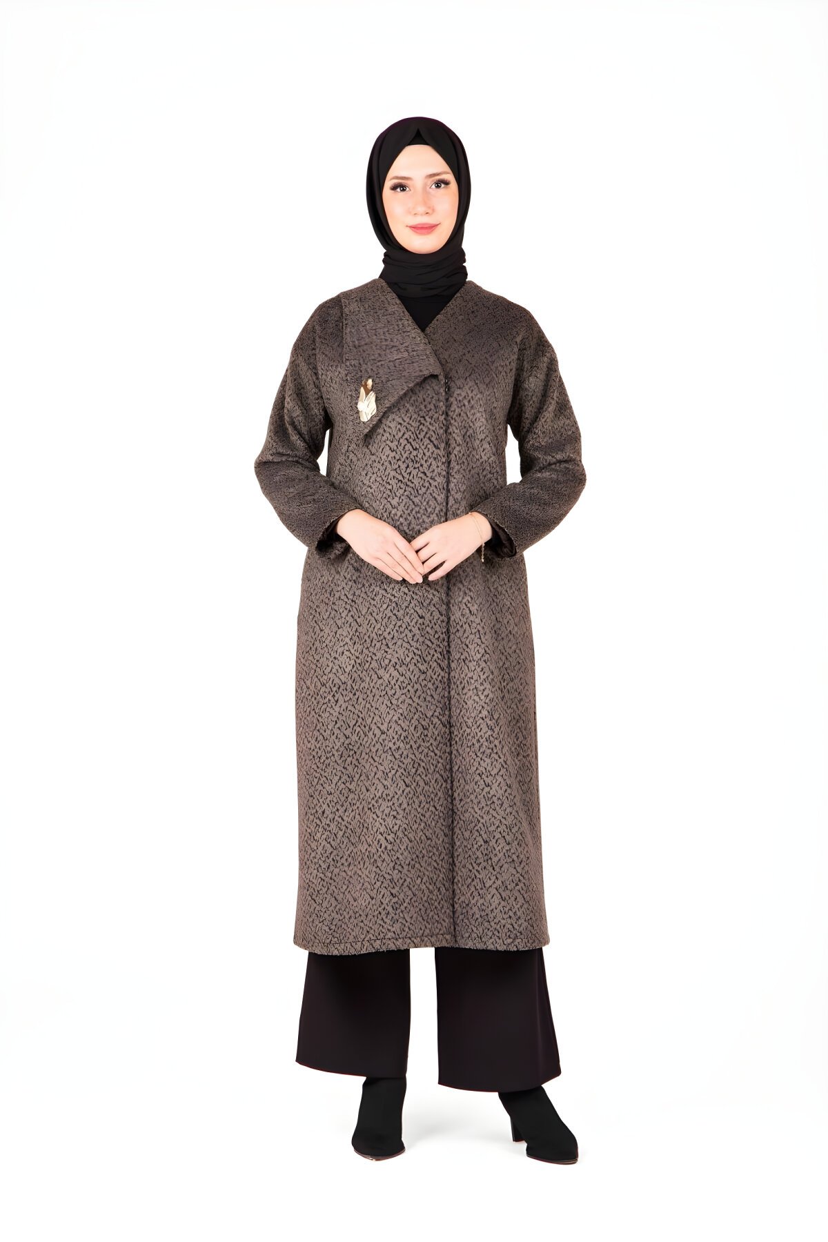 BeyzaDegaje Yakalı Vizon Desenli Tesettür Kaban