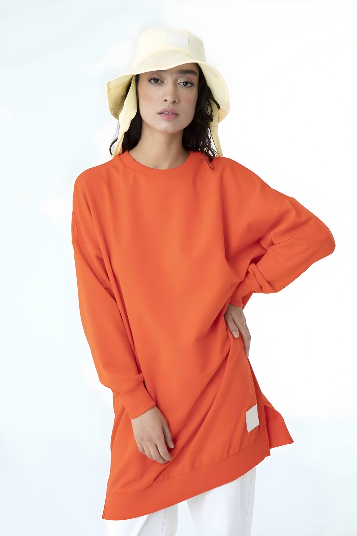 PuaneSomon Rengi İki İp Kumaş Basic Sweatshirt Tesettür Tunik
