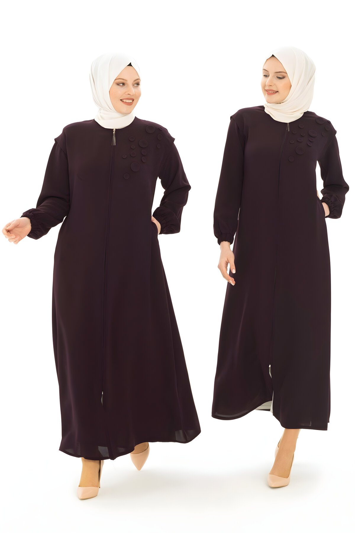 BeyzaMürdüm Rengi Düğme Aksesuarlı Kol Detaylı Ferace