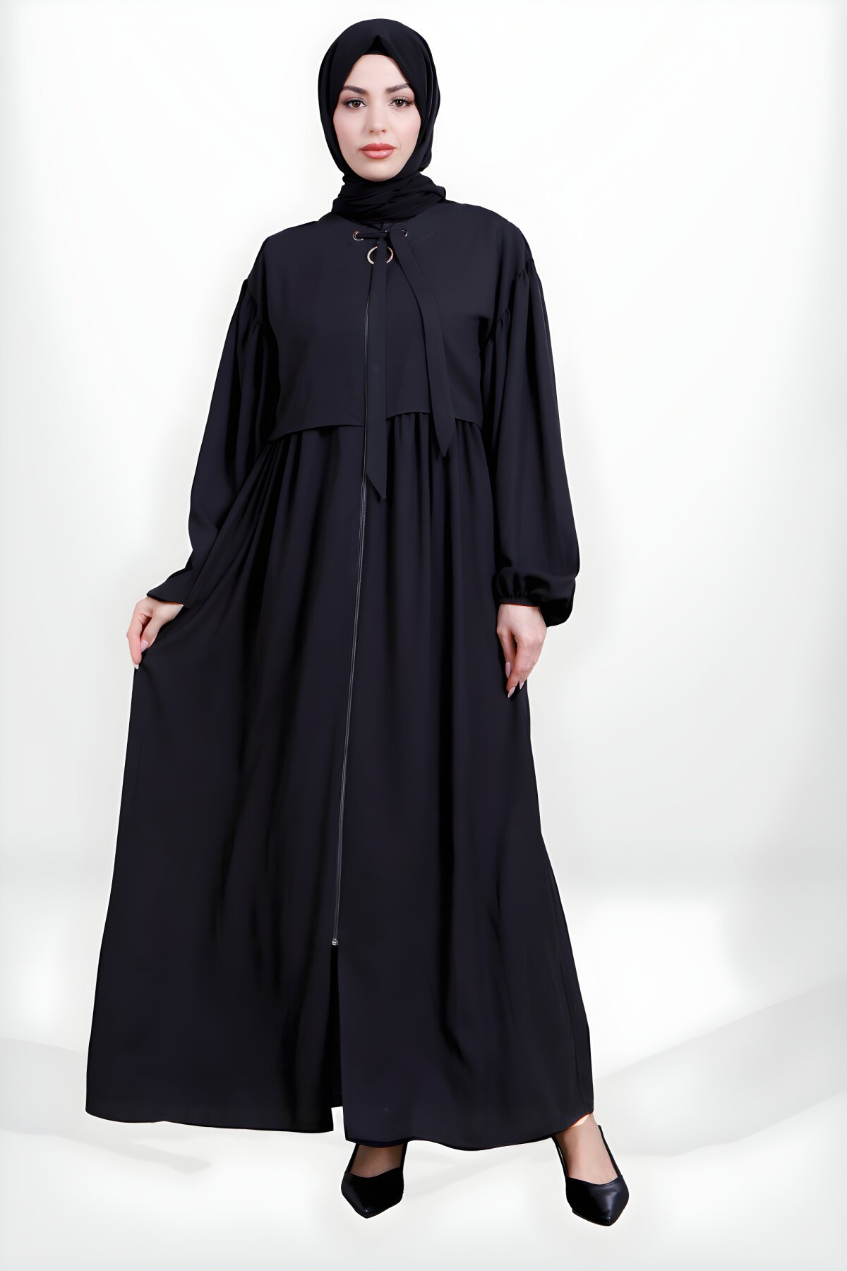BeyzaYakası Bağlamalı Bolero Detaylı Siyah Ferace