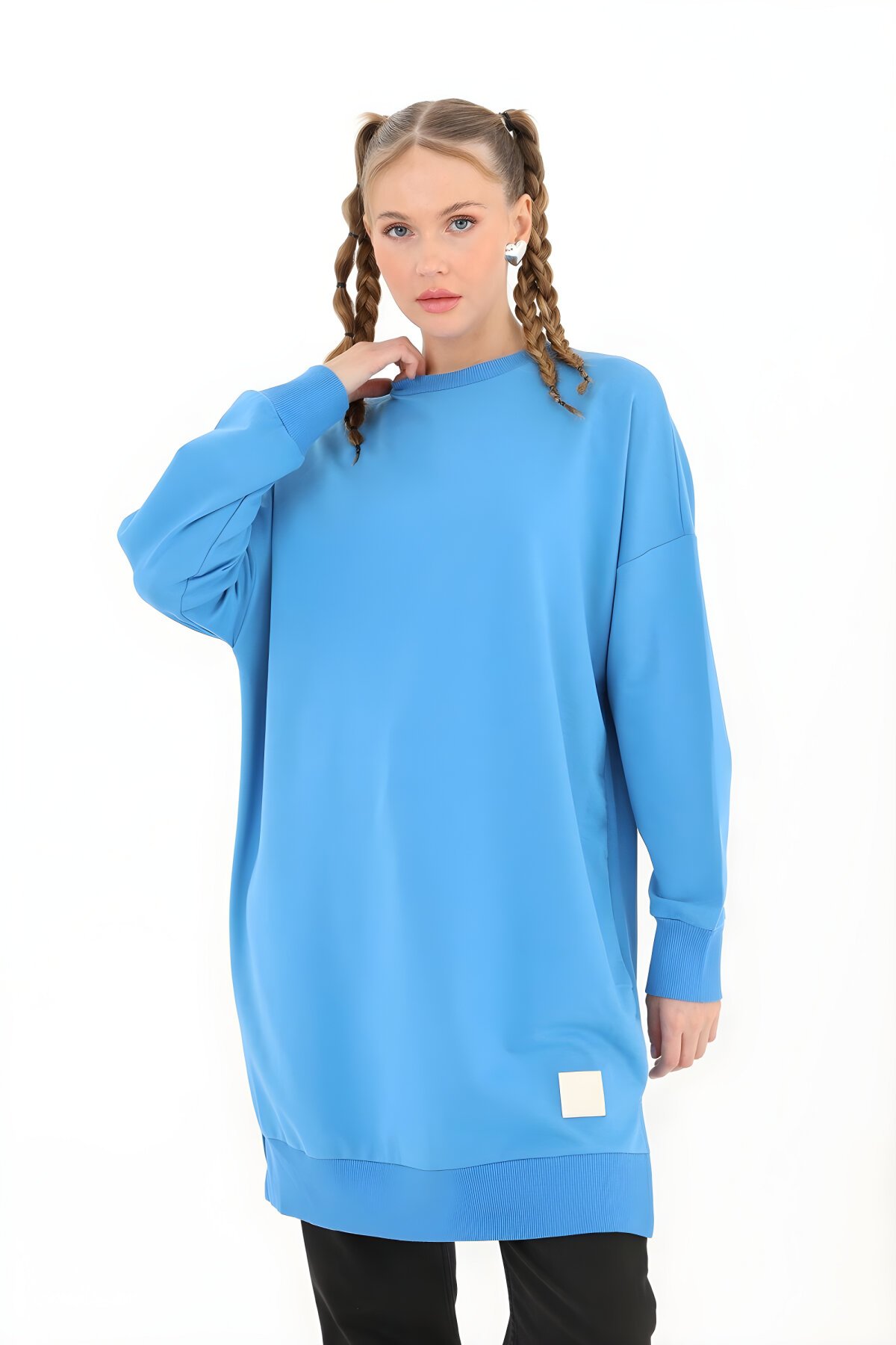 Puaneİndigo Renk İki İp Kumaş Basic Sweatshirt Tesettür Tunik