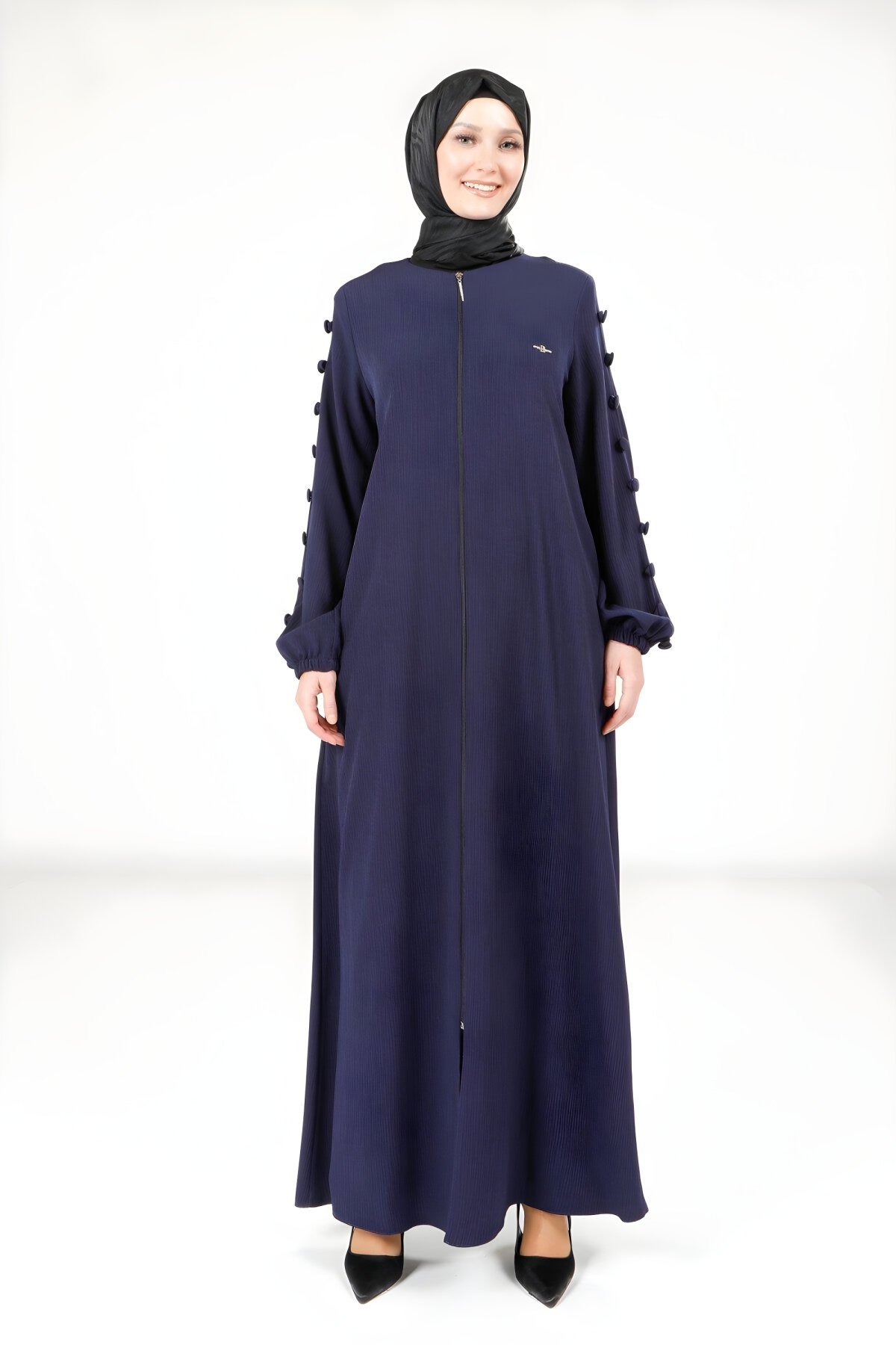 BeyzaKolu Düğme Detaylı Lacivert Ferace