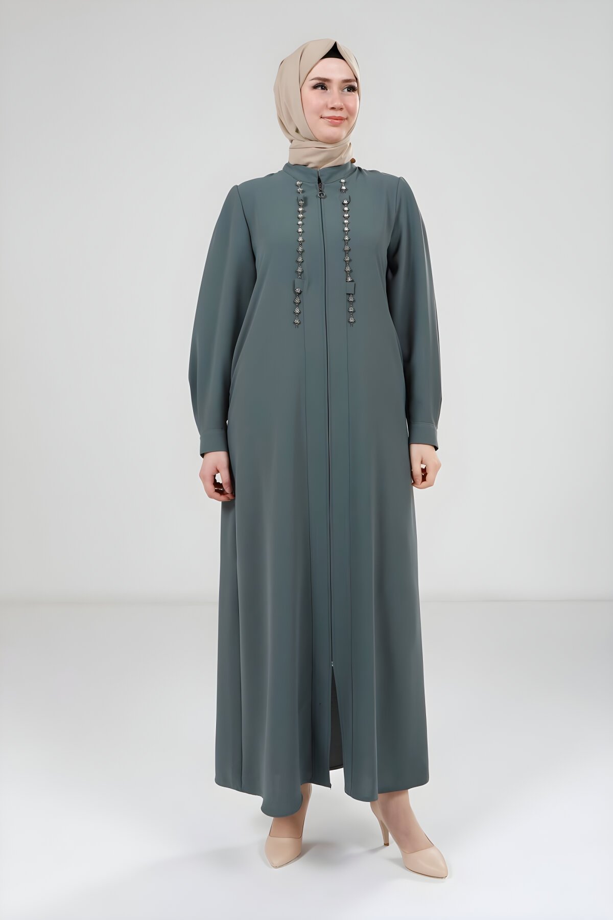 Beyza markasının özel tasarımı olan Yeşil Zincir Taşlı Ferace, zarif ve şık tesettür giyim arayanlar için idealdir. Ferace, rahat kalıbı ve göz alıcı zincir taş detayları ile hem günlük kullanıma hem de özel günlere uygundur. Modest giyimin en seçkin parçaları Devr-i Tesettür güvencesiyle sizlerle.