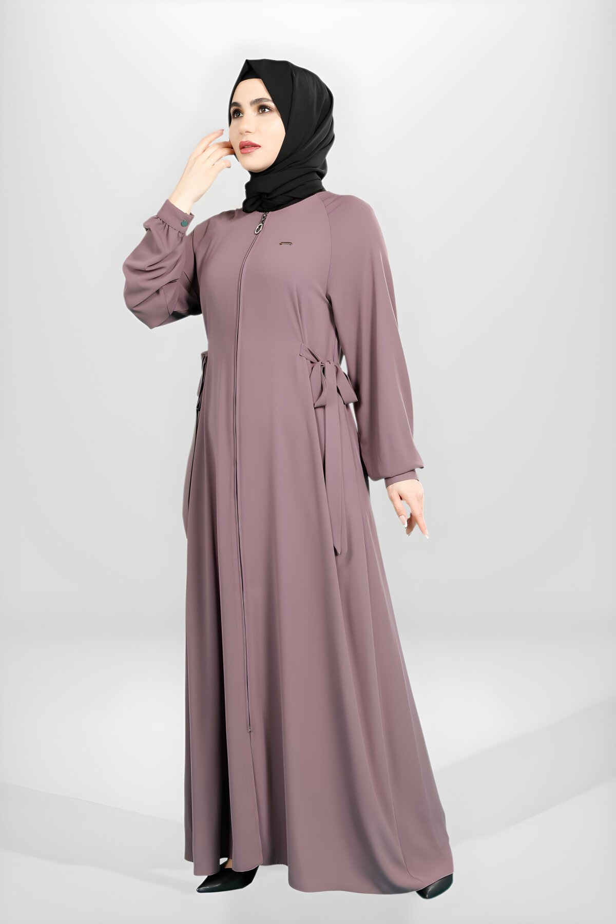 BeyzaGül Kurusu Renk Yandan Bağlamalı Fermuarlı Ferace