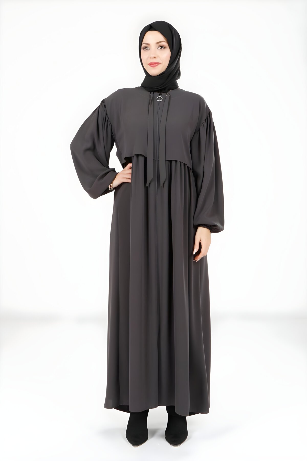 Modest giyimin kalbi Devr-i Tesettür'de! Beyza markasının sunduğu Koyu Gri Yakası Bağlamalı Bolero Detaylı Ferace ile şıklığınızı tamamlayın. Bu özel tasarım ferace, hem rahatlık hem de modern bir görünüm sunar. Günlük ve özel anlarınız için ideal olan bu parçayı hemen keşfedin.