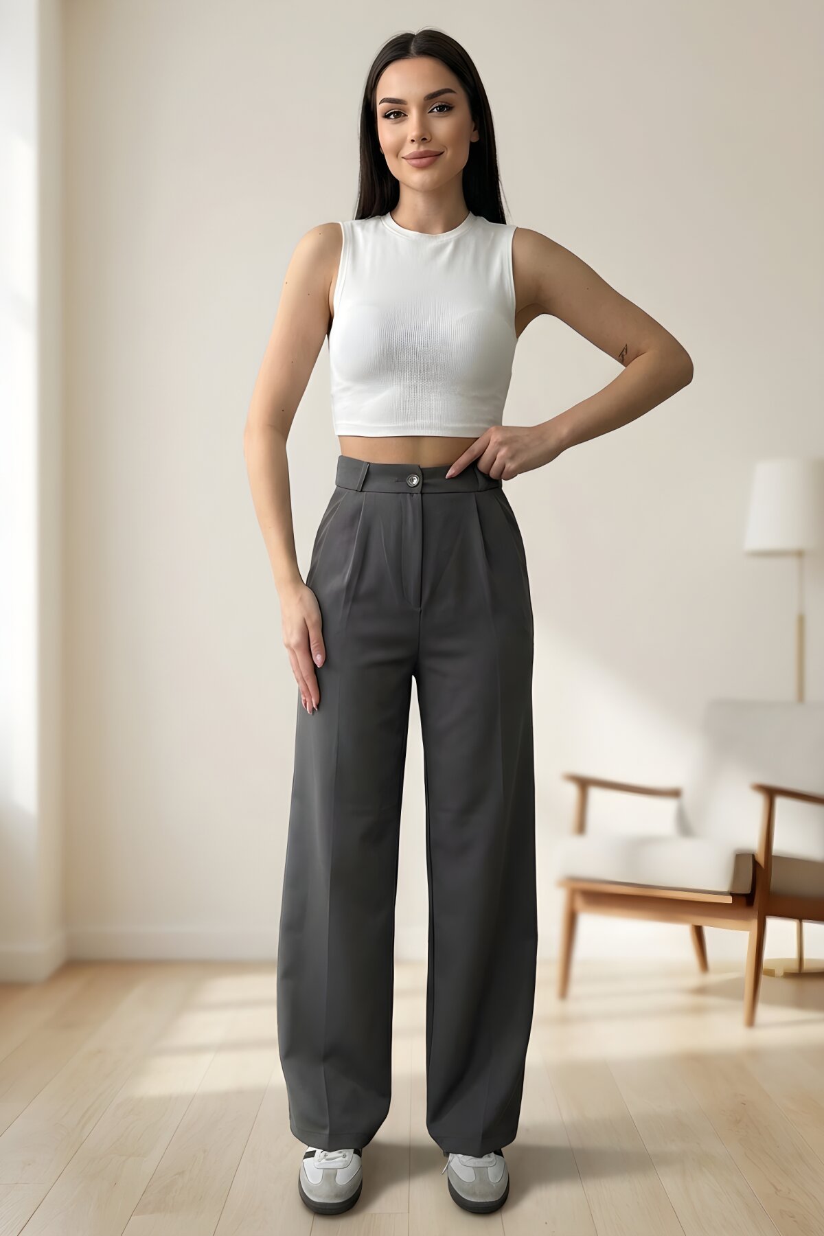 RAWEA FASHİONDabıl Kumaş Palazzo Kesim Antrasit Tesettür Pantolon