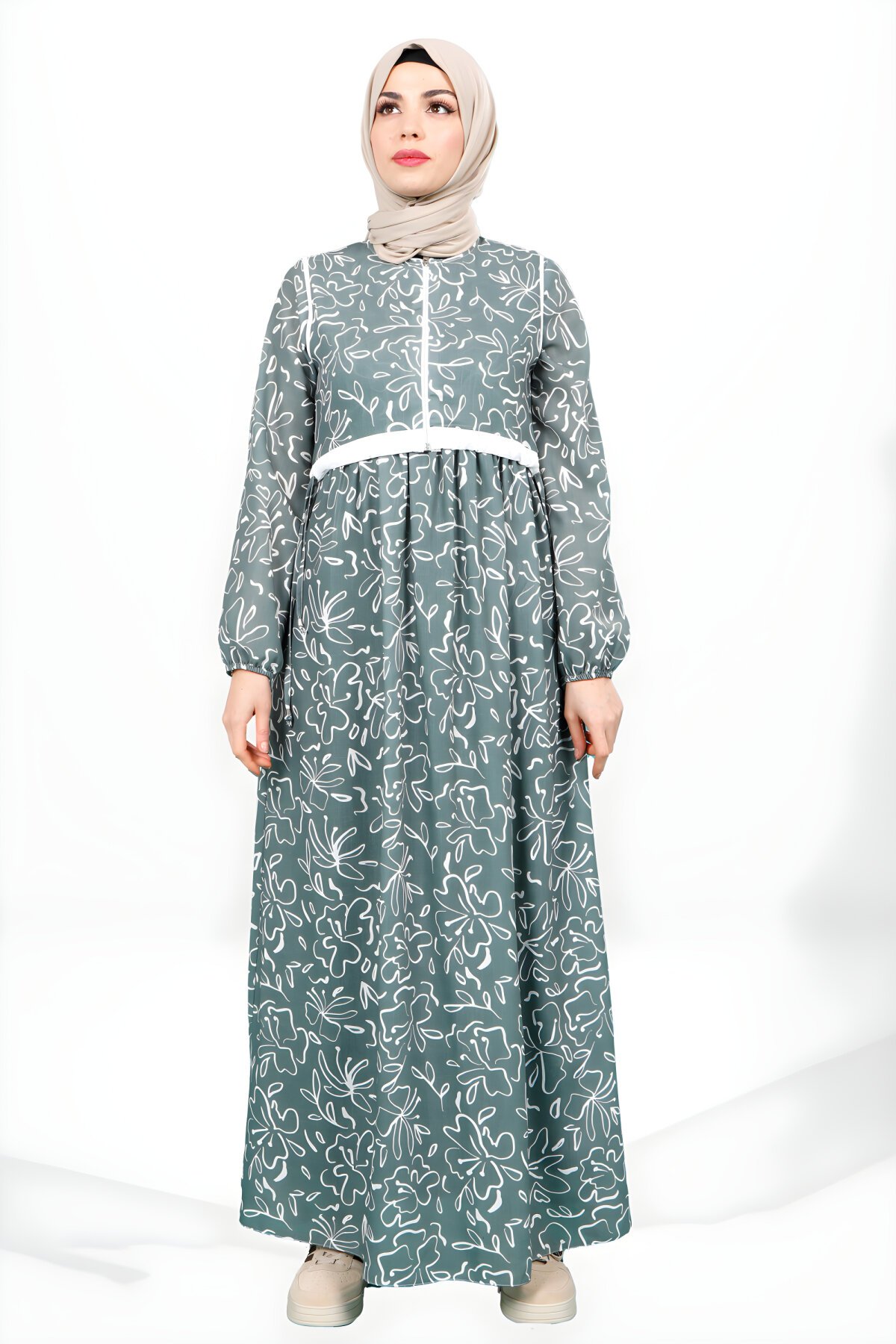 Beyza markasına ait bu zarif yeşil tesettür elbise, şıklığı ve rahatlığı bir arada sunuyor. Canlı çiçek desenleri ve ayarlanabilir beli sayesinde kusursuz bir uyum sağlar. Üstü kapama detayı ile modern ve katmanlı bir görünüm elde edebilirsiniz. Günlük veya özel günler için ideal olan bu uzun elbiseyi Devr-i Tesettür güvencesiyle hemen keşfedin.
