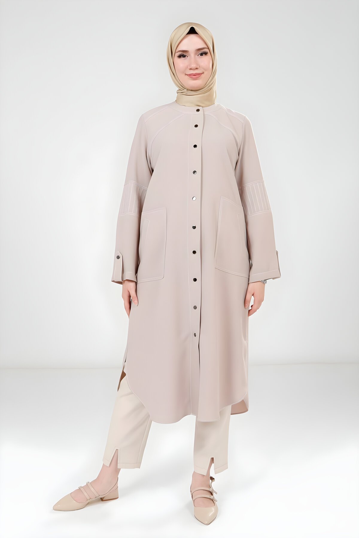 Beyza markasına ait, rahat ve modern Bej Spor Dikişli Giy Çık Kap modelini keşfedin. Günlük şıklığınızı zahmetsizce tamamlayacak bu parça, tesettür dış giyim kategorisinin en sevilenleri arasında. Devr-i Tesettür güvencesiyle hemen sipariş verin, konforlu şıklığın keyfini çıkarın.