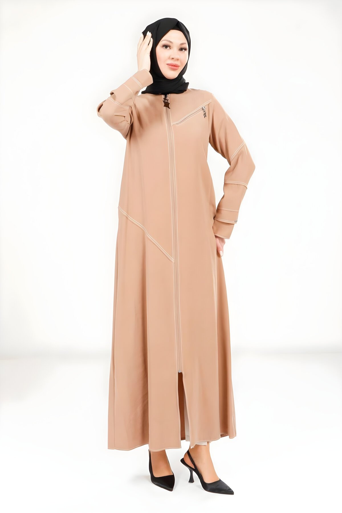Devr-i Tesettür'ün Beyza markası işbirliğiyle sunduğu bu vizon spor dikişli ferace, günlük şıklığı ve rahatlığı bir araya getiriyor. Hareket özgürlüğü sunan kesimi ve modern spor dikiş detayları sayesinde hem işte hem de sosyal yaşamda tercih edilebilir. Devr-i Tesettür güvencesiyle uzun ömürlü ve kaliteli bir tesettür parçasına sahip olun.