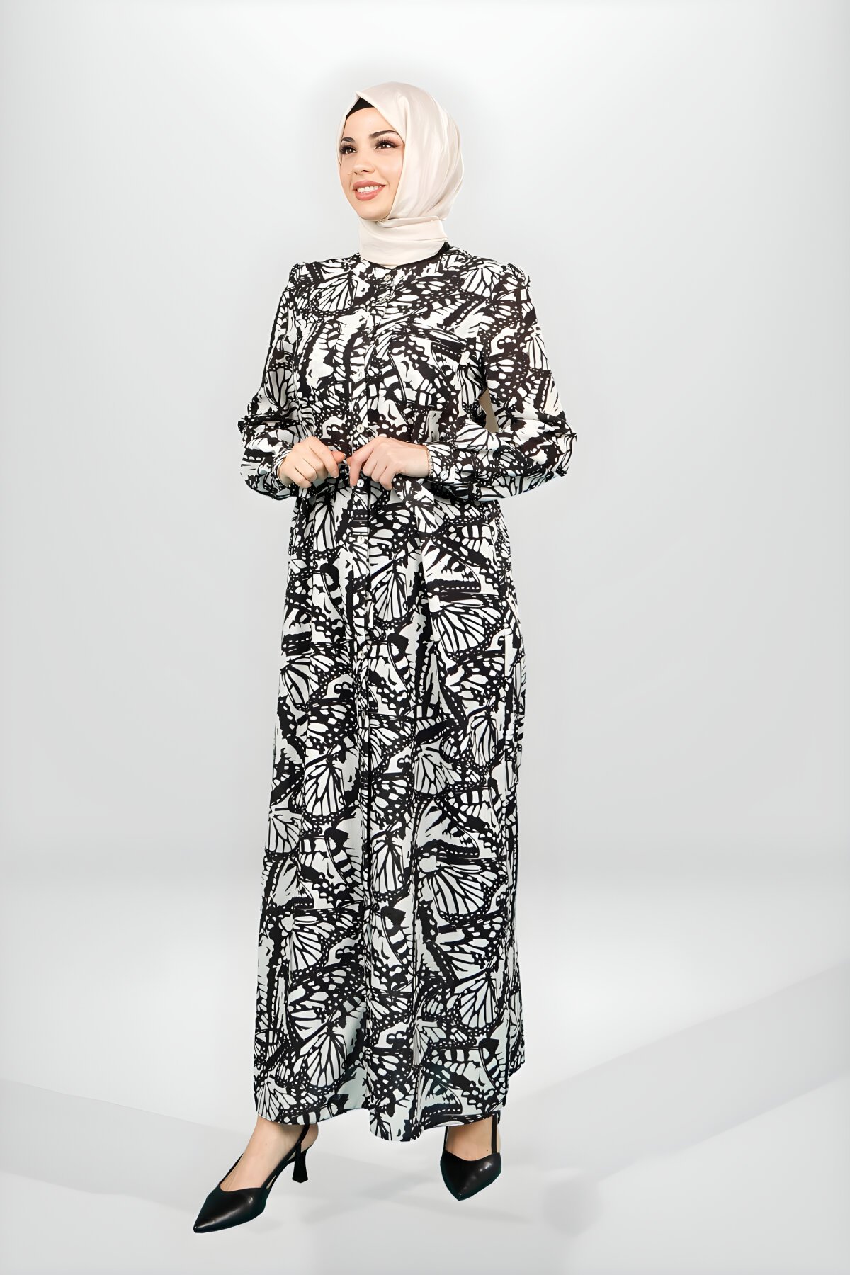 Beyza markasının özel olarak tasarladığı bu siyah kuşaklı desenli gömlek elbise modeli, tesettür giyimde şıklığı ve rahatlığı bir araya getiriyor. Günlük kullanıma uygun, nefes alan kumaşı sayesinde uzun süreli konfor sağlar. Farklı beden ve fiyat aralıklarındaki en seçkin tesettür elbise modelleri için Devr-i Tesettür'ü ziyaret edin.