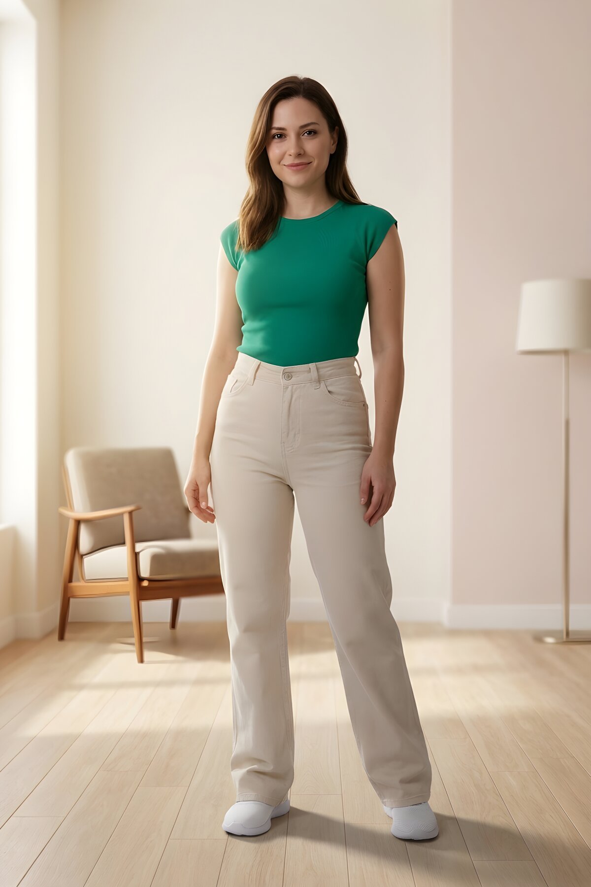 ButikTaş Rengi Geniş Paça Tesettür Kot Pantolon