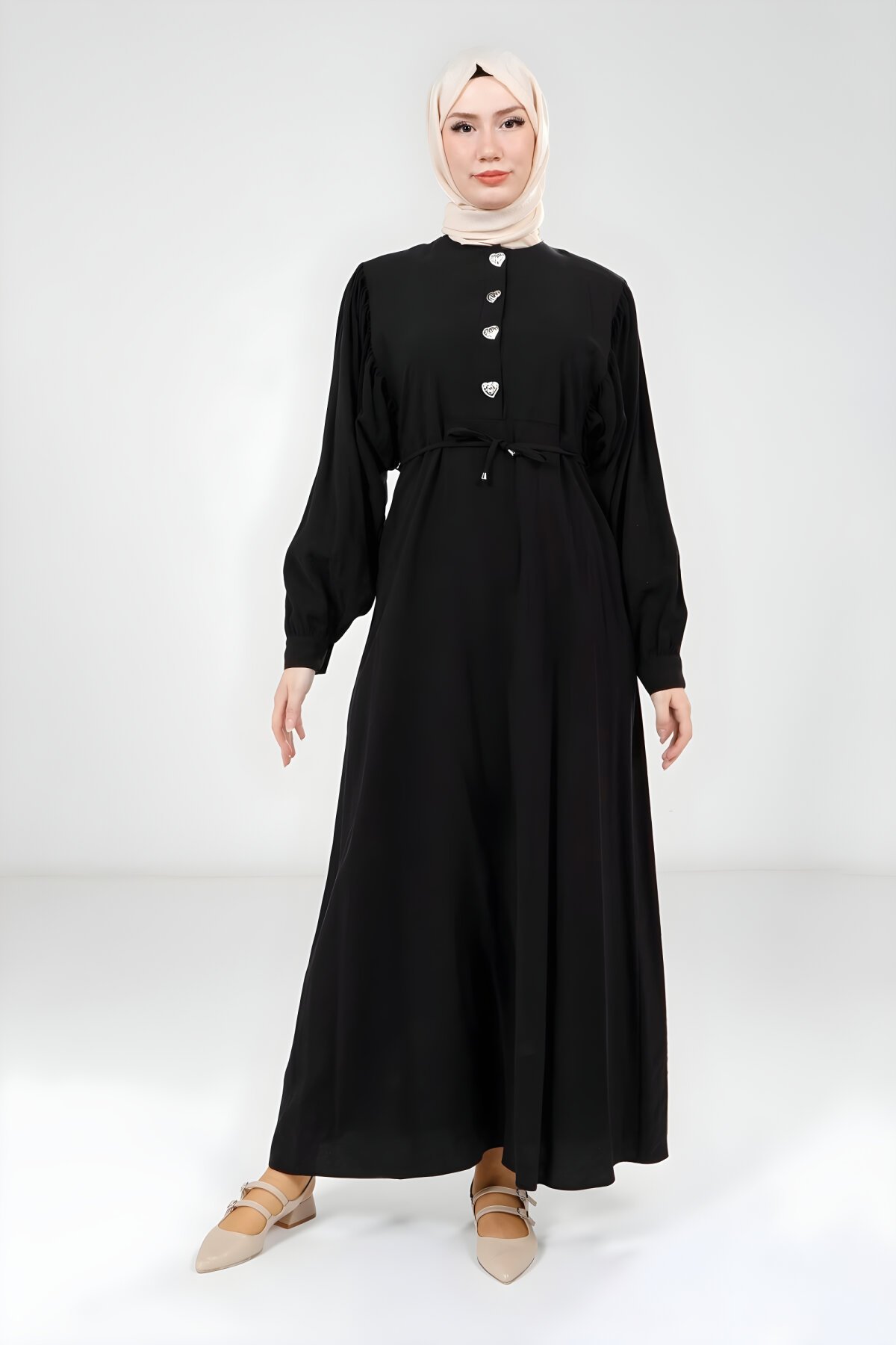 BeyzaSiyah Düğme Detaylı Modal Tesettür Elbise