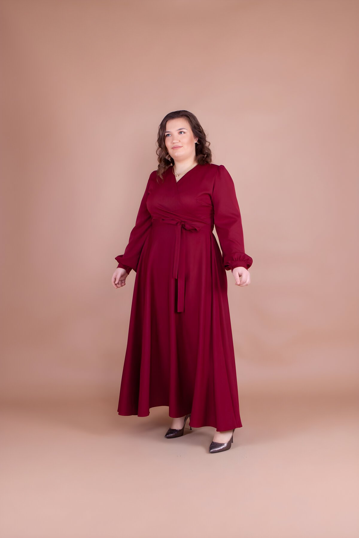 BidoluelbiseBordo Büyük Beden Tesettür Abiye Elbise