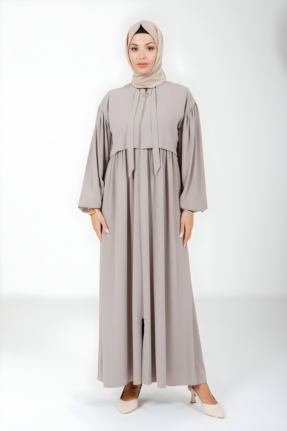 Astarsız, ürün fermuarlı yelek elbiseden ayrı ve önü tesettür bej renk ferace.