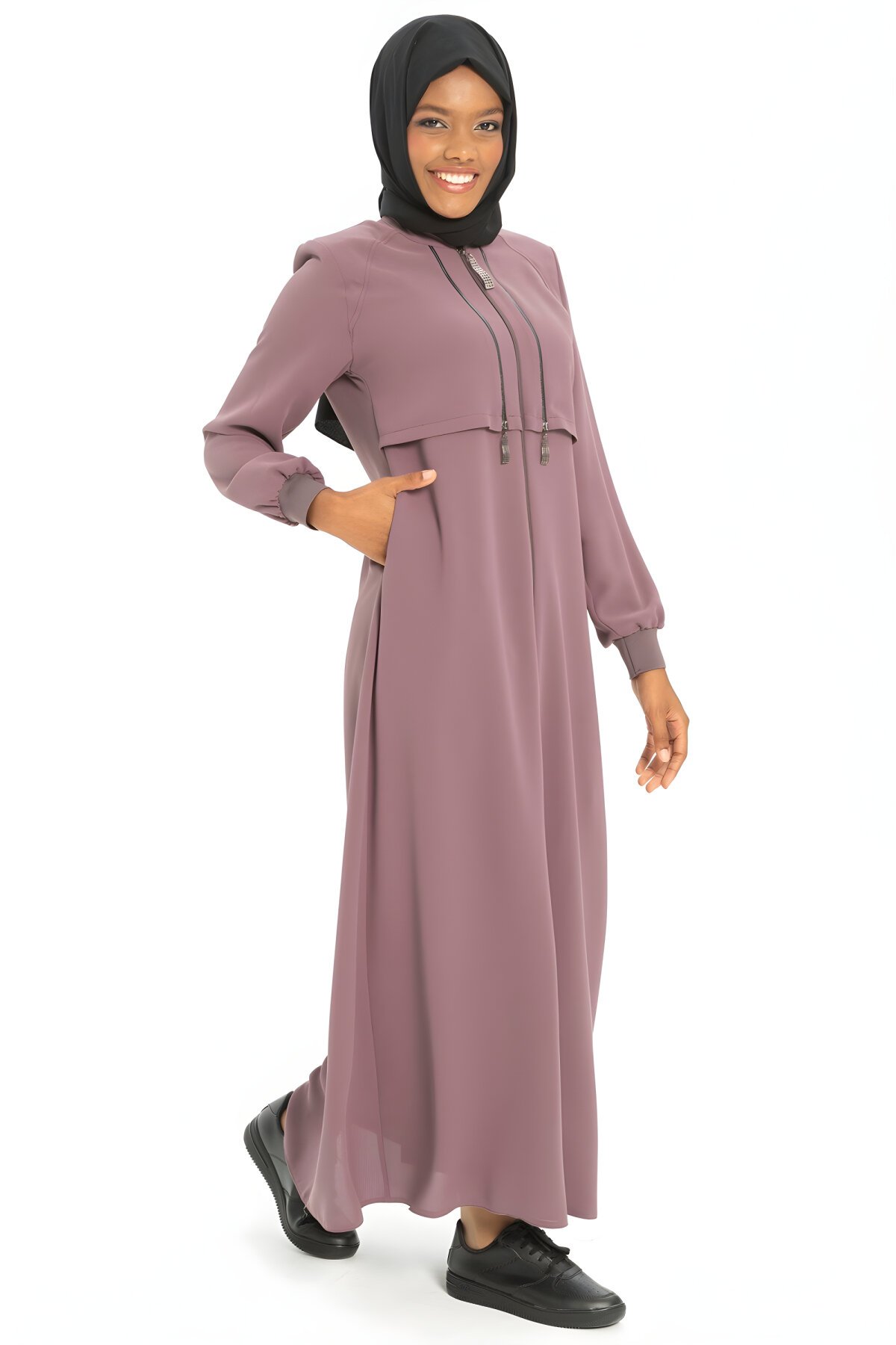 BeyzaÇift Fermuar Detaylı Kapuçino Ferace