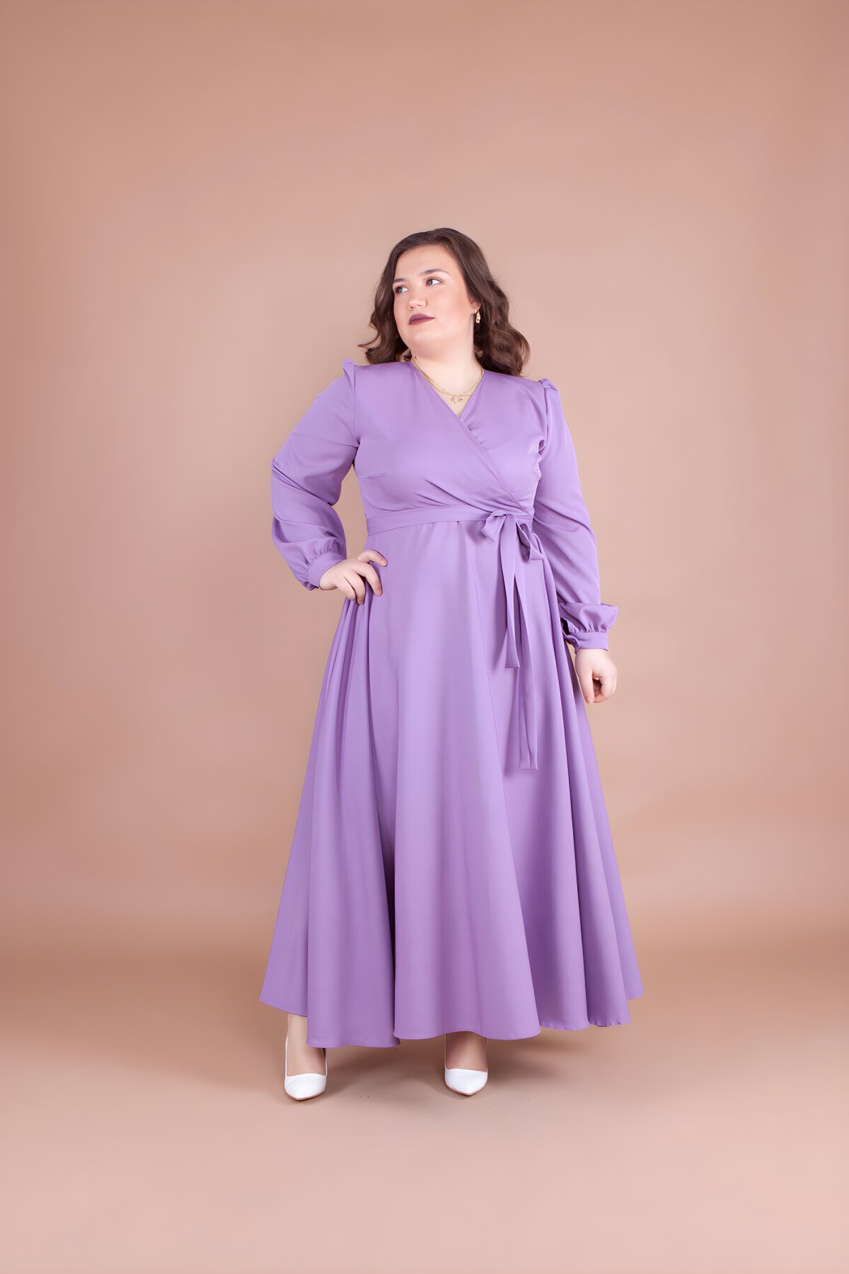 Bidoluelbise Büyük Beden Leylak Tesettür Abiye Elbise