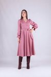 Bidoluelbise Kruvaze Yaka Detaylı Gül Kurusu Uzun Kol Tesettür Elbise