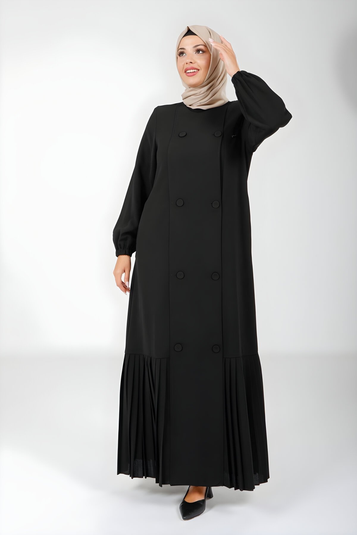 BeyzaSiyah Pliseli, Düğme ve Yandan Cep Detaylı Ferace