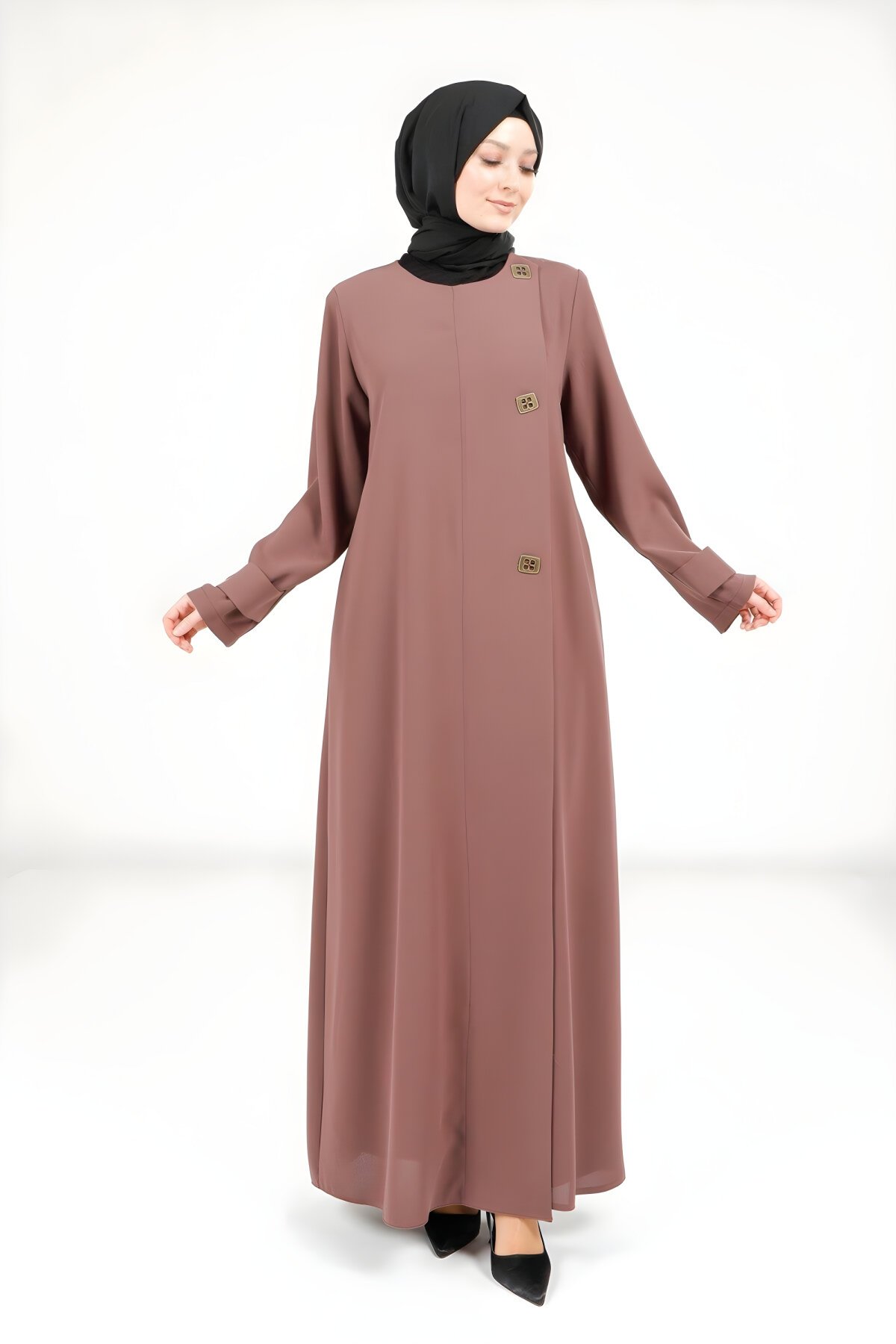 BeyzaDüğme Detaylı Kapuçino Ferace