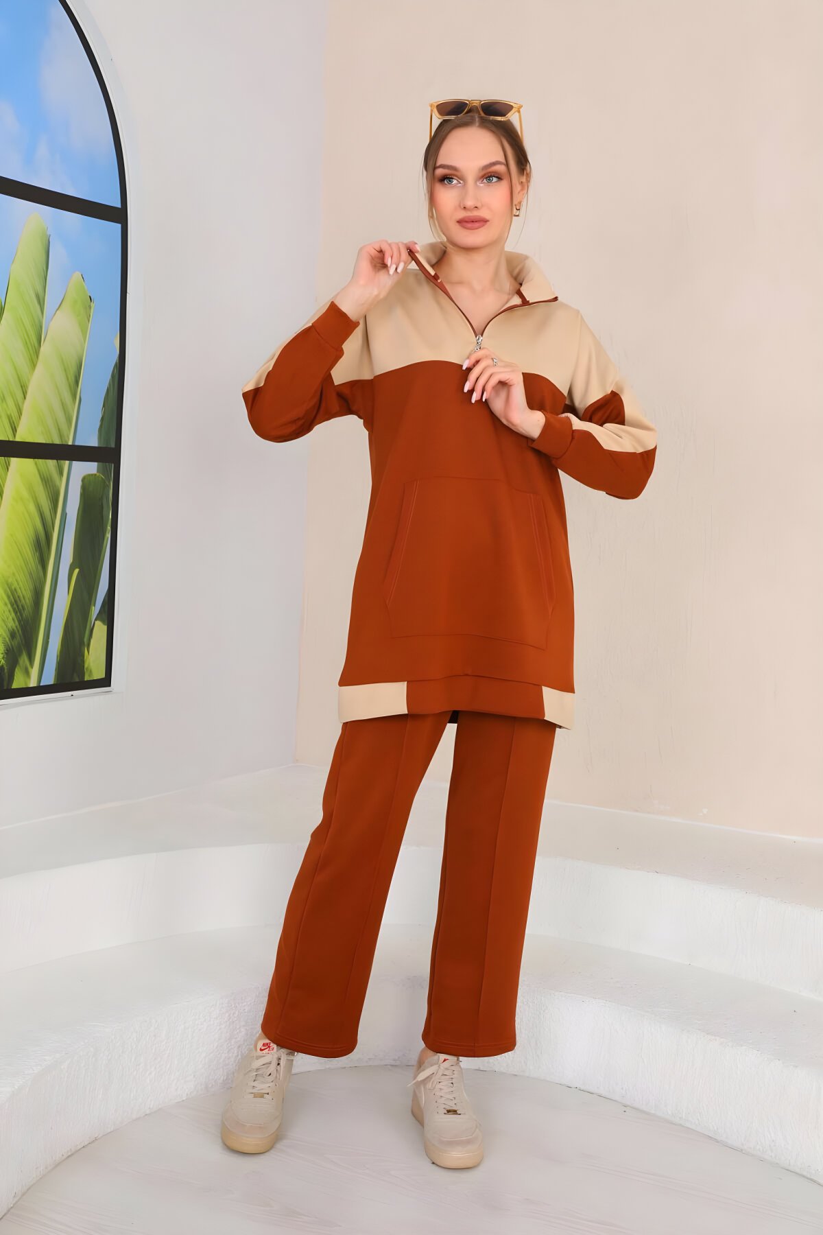 westbound markasının konforlu şıklık sunan Taba Desenli Spor İkili Tesettür Takımı ile tanışın. Günlük kullanım için ideal olan bu eşofman takımı, tesettür giyimin spor çizgisini mükemmel yansıtıyor. Nefes alan kumaşı ve modern desenleriyle hareket özgürlüğünüzü Devr-i Tesettür güvencesiyle yaşayın. Hemen keşfedin!