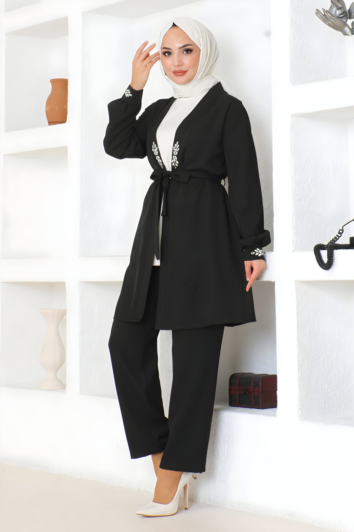 ModamihramTaş Detaylı Siyah İkili Tesettür Takım