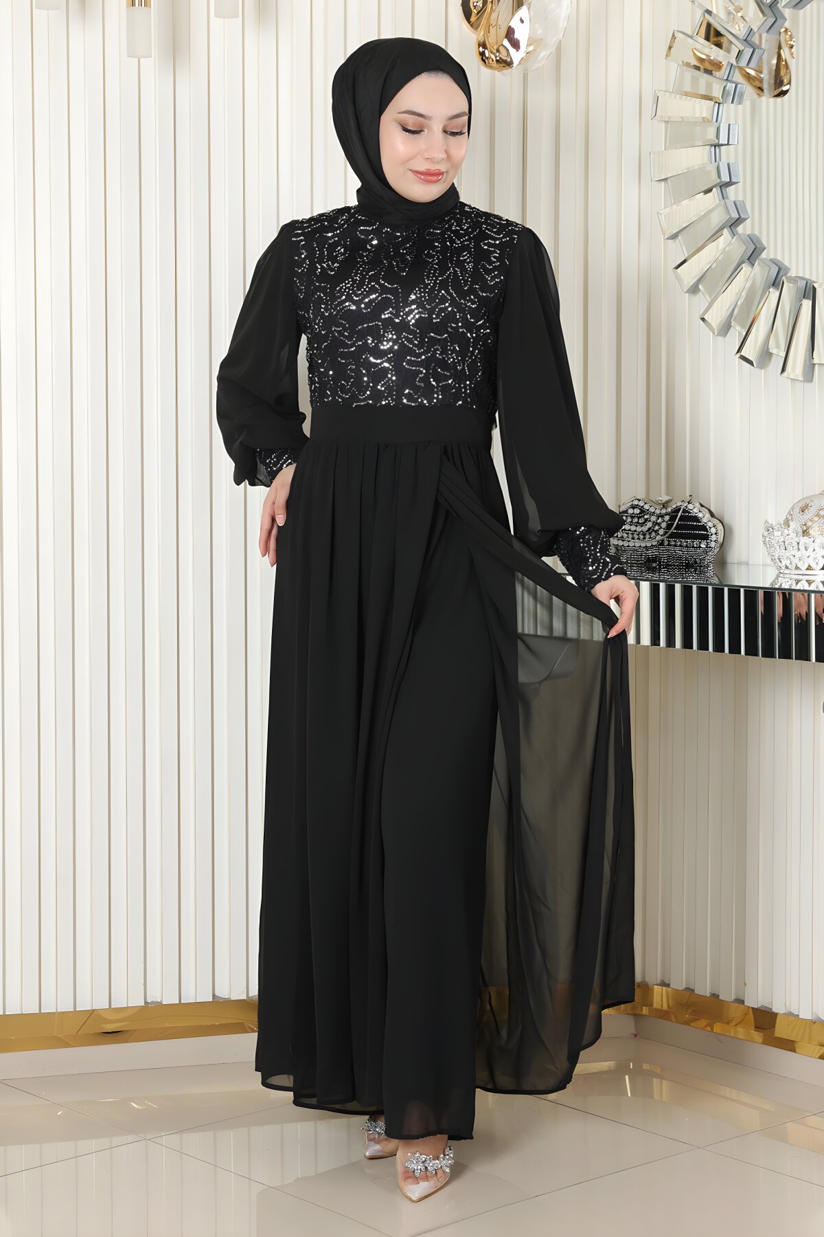 ModamihramPulpayetli Detaylı Siyah Şifon İkili Tesettür Takım