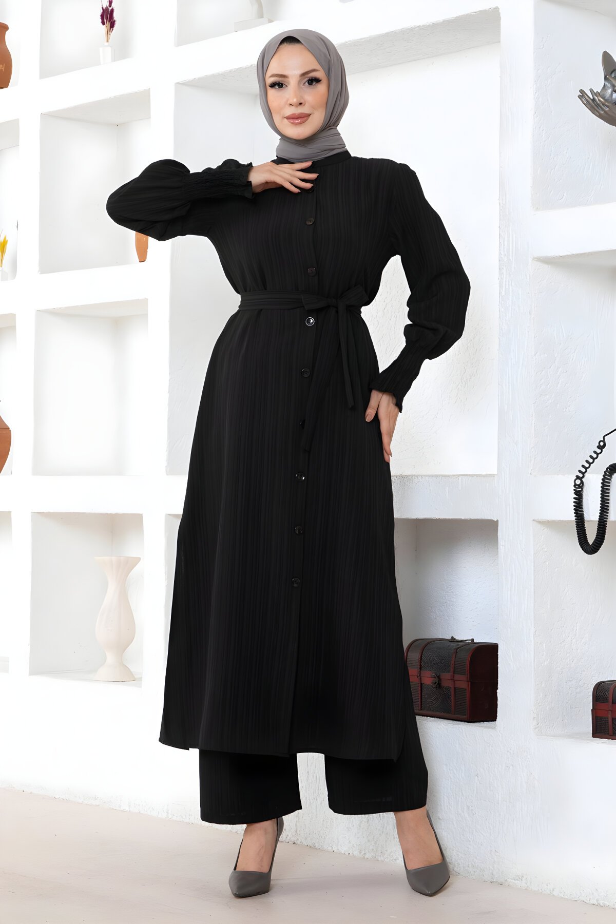 ModamihramSiyah Yırtmaç Detaylı İkili Tesettür Takım