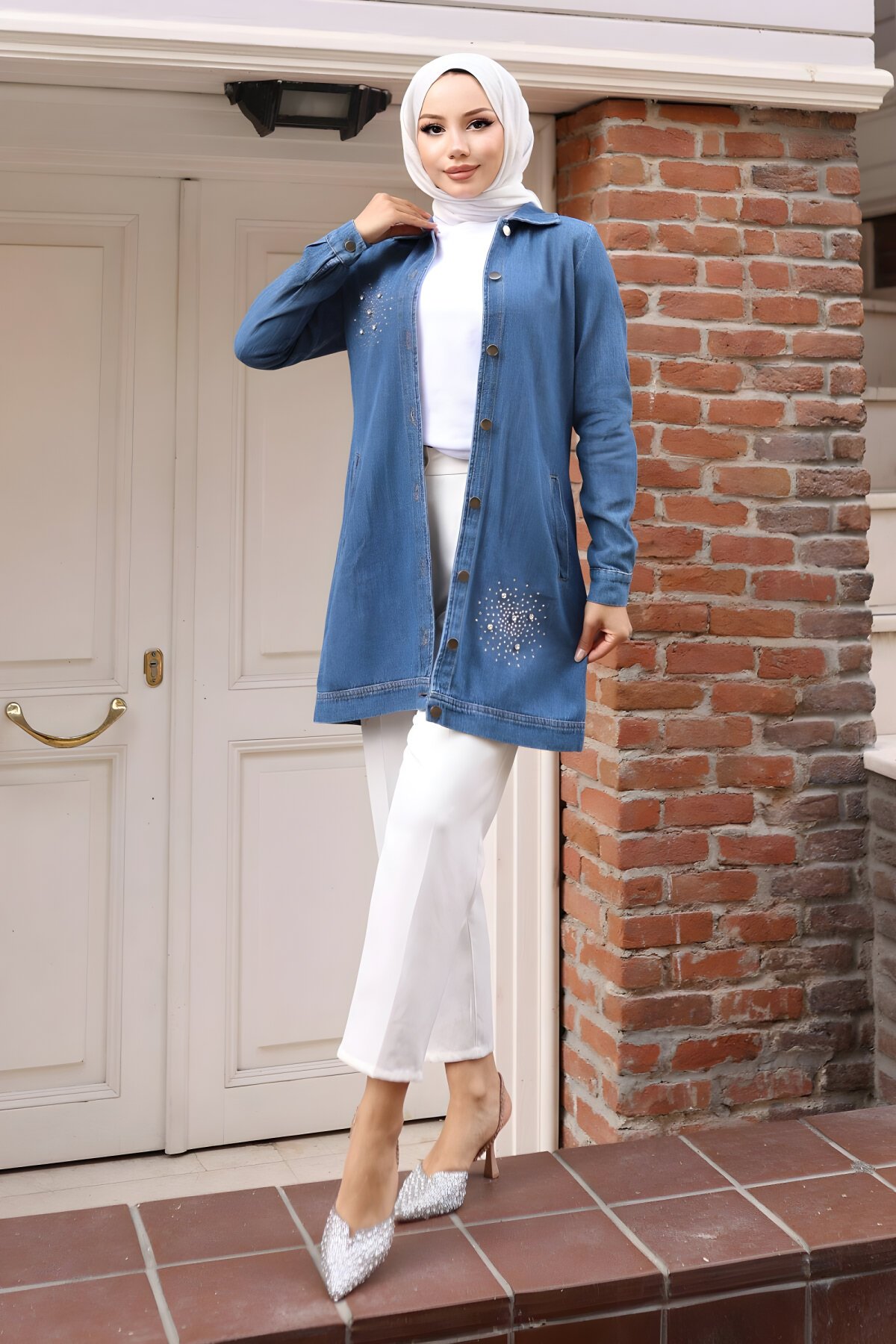 Tarzınıza şıklık katacak, Modamihram markasına ait Açık Mavi Taş Detaylı Kot Tesettür Gömlek, Devr-i Tesettür'de sizleri bekliyor. Kotun rahatlığını taş detaylarının ışıltısıyla birleştiren bu parça, günlük ve özel kombinleriniz için ideal bir seçimdir.