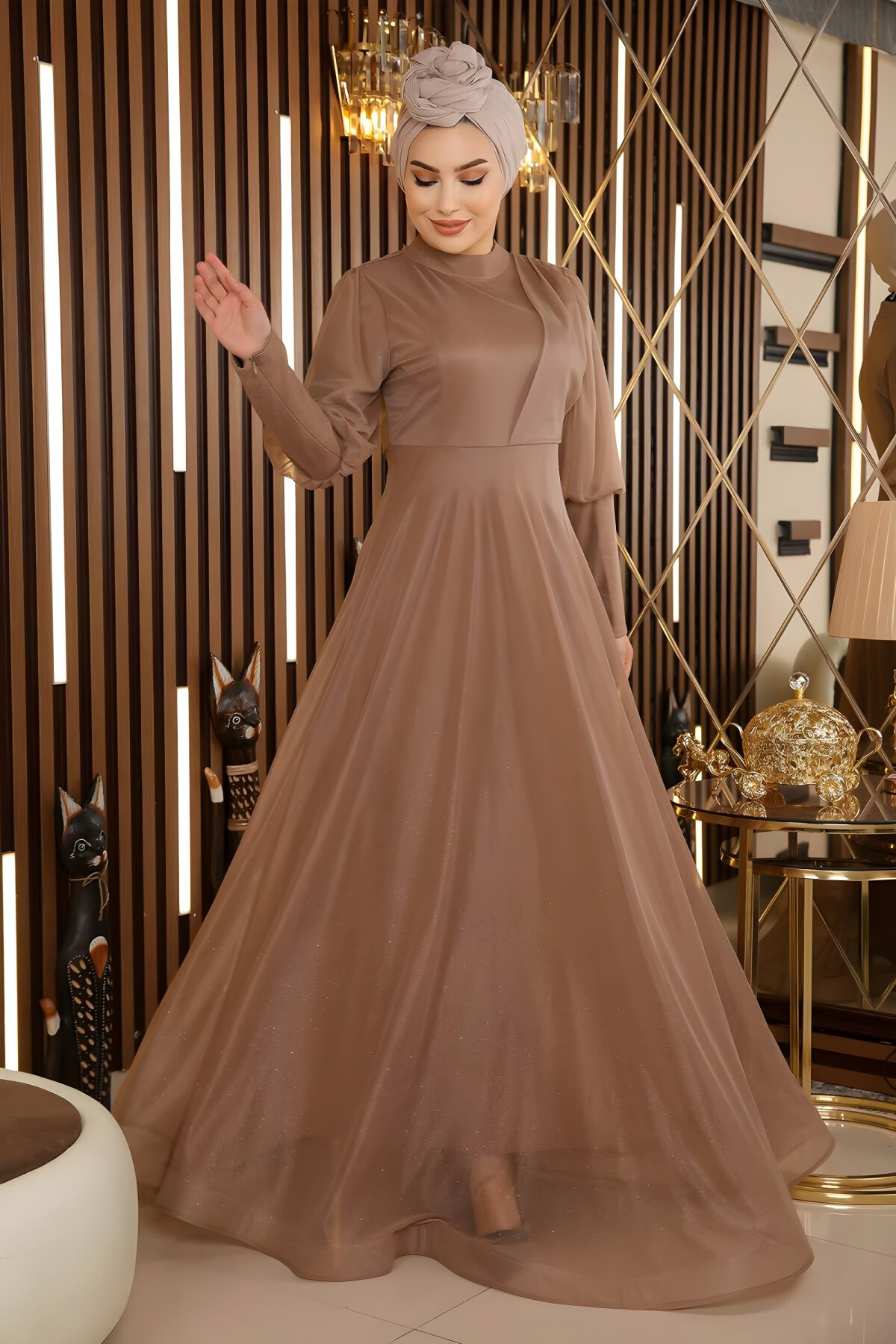 ModamihramVizon Simli Manşeti Fermuar Detaylı Tesettür Abiye Elbise