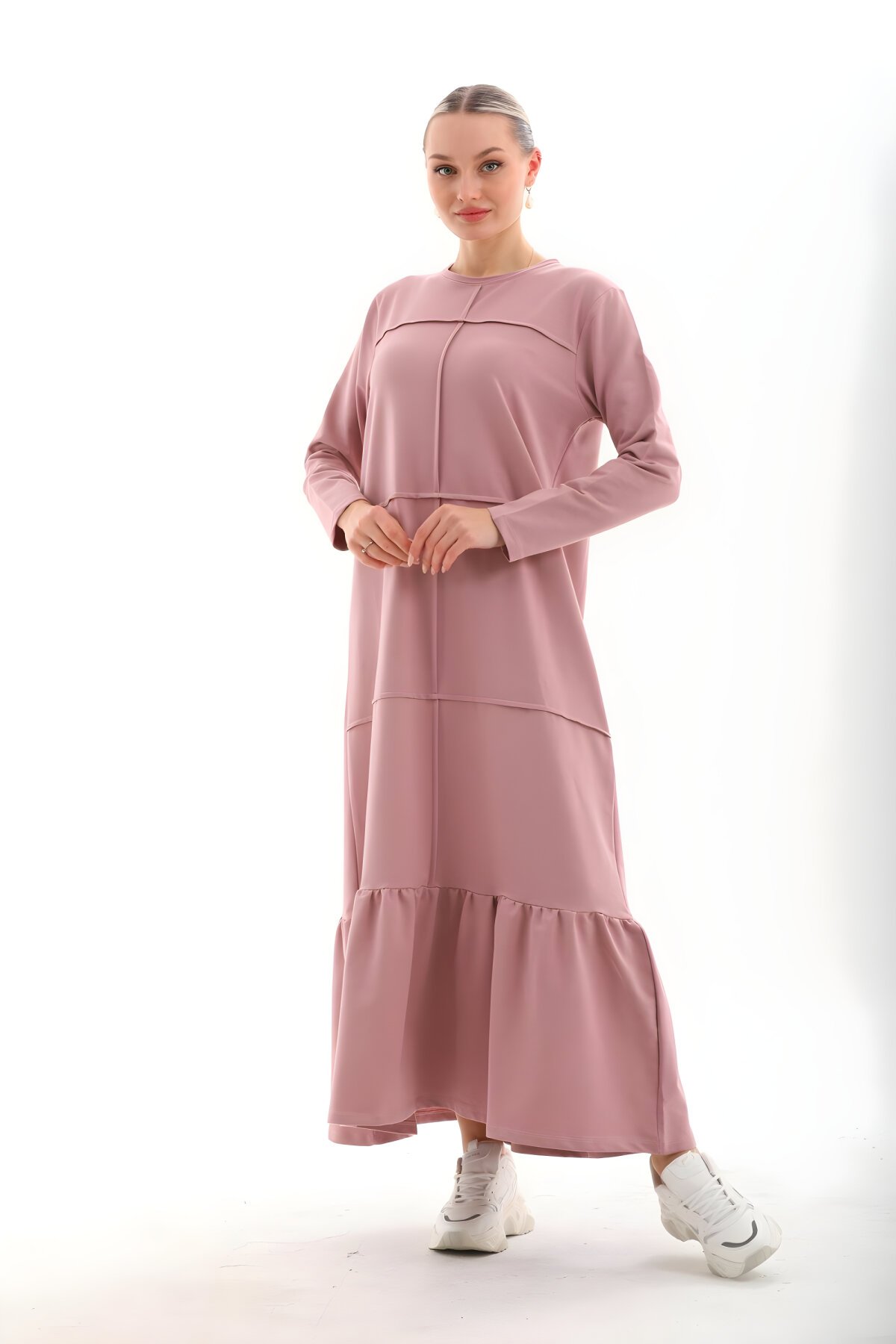 PUDRA Bloklu Eteği Fırfırlı Tesettür Günlük Uzun Spor Salaş Model Elbise - 665