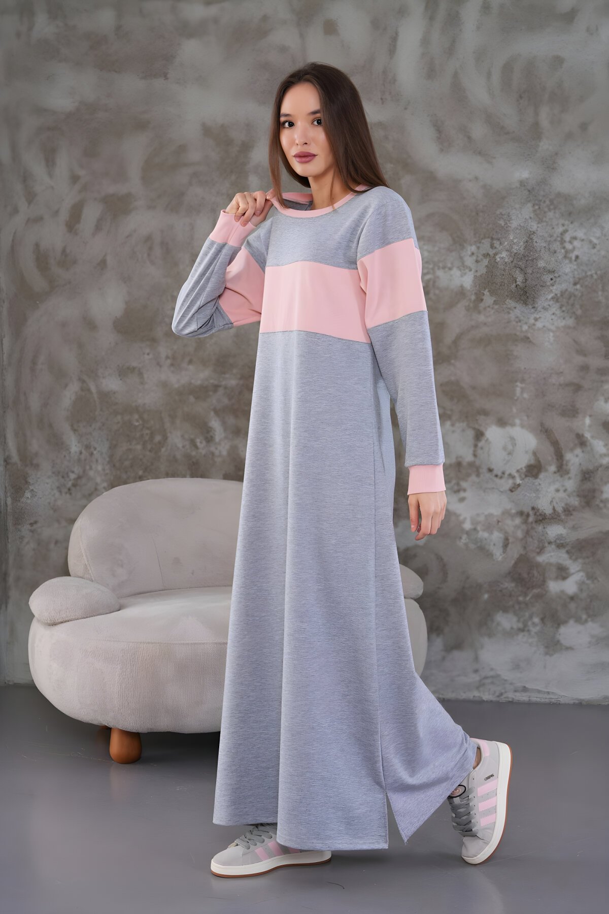 WestboundRibana Detaylı Bloklu Spor Pudra Tesettür Elbise