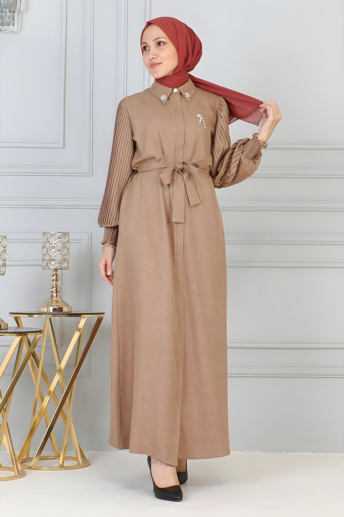 ModamihramFermuarlı Taba Taş Detaylı Ferace
