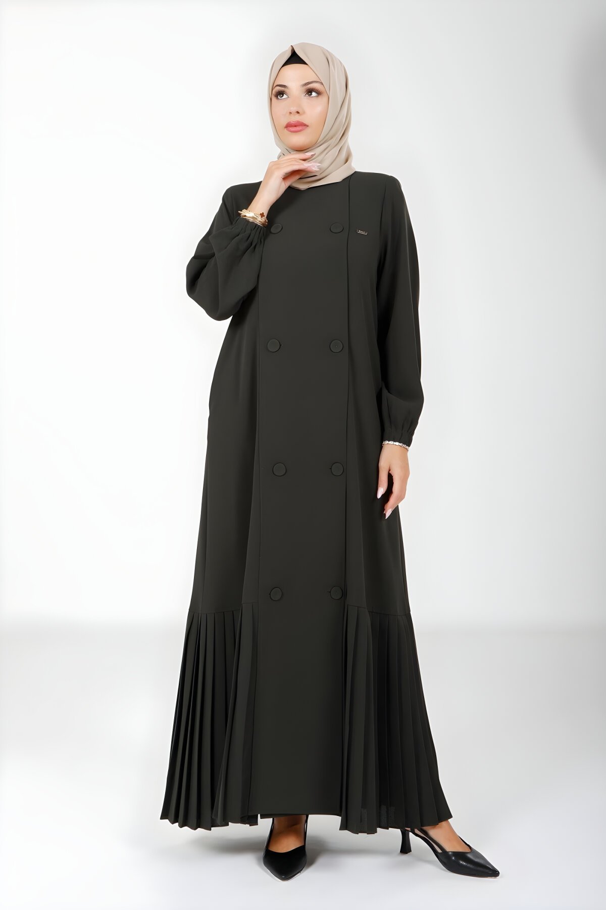 BeyzaYeşil Pliseli Ferace (Düğme ve Yandan Cep Detaylı)