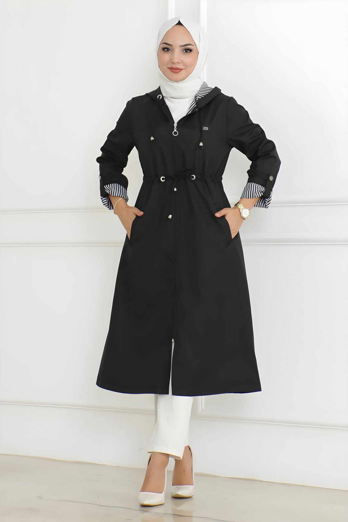 Ürün Özelliği : Yeni sezon tesettür moda ürünüdür. Astarsızdır. Önden kullanılabilir fermuarı bulunmaktadır. Kapşonu ve beli bağcıklıdır. Cep mevcuttur. Ürün renginde konsept çekimlerinden dolayı ton farklılığı olabilir.