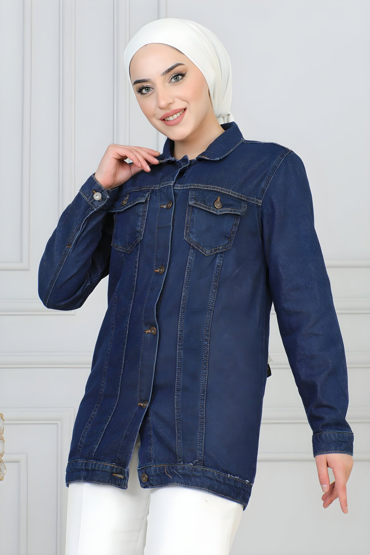 Koyu mavi rengi ve şık düğme detaylarıyla dikkat çeken Modamihram kot ceket, Devr-i Tesettür'de sizinle buluşuyor. Günlük kombinleriniz için ideal olan bu uzun ömürlü ve rahat ceket, tesettür giyimin konforunu modern stil ile birleştiriyor. Hemen keşfedin ve dolabınıza şıklık katın!