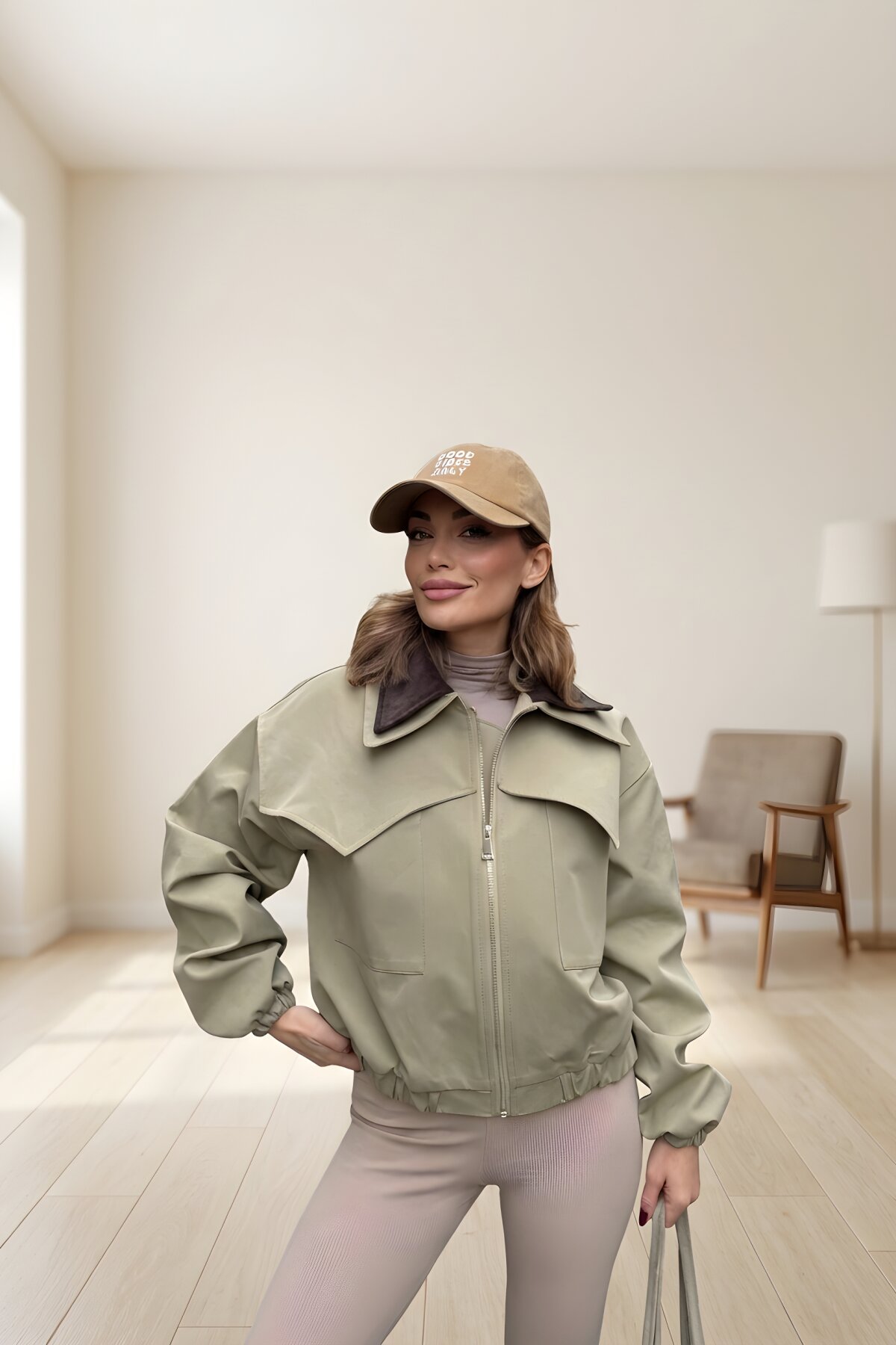 RAWEA FASHİONYeşil Renk Çift Yakalı Mont Ceket