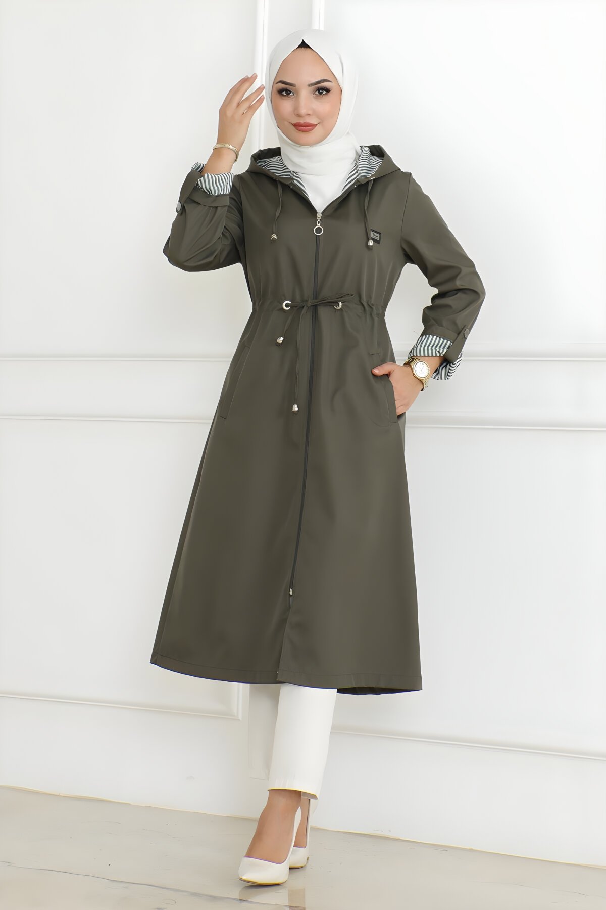 Devr-i Tesettür'de Modamihram markasının en yeni koleksiyonundan Haki Kapüşonlu Fermuarlı Trençkot modeli ile tanışın. Modern ve rahat kesimi sayesinde günlük giyim için ideal bir parçadır. Rüzgarlı ve serin havalarda şıklığınızdan ödün vermeden maksimum konfor sağlayın. Bu eşsiz tesettür trençkotu şimdi keşfedin.