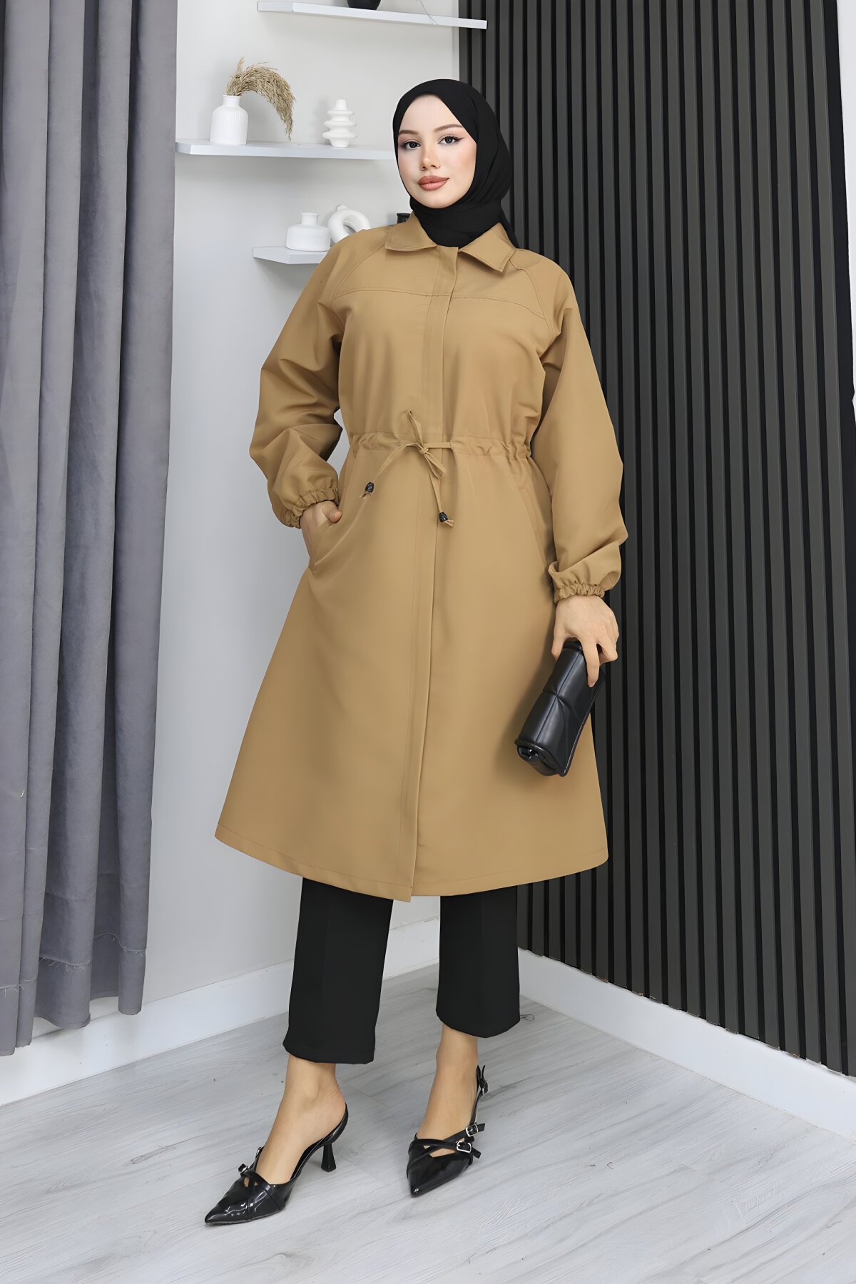Devr-i Tesettür'ün seçkin markalarından Misskayle imzalı bu Camel Gizli Patlı Trençkot ile şıklığınızı koruyun. Modest giyimin ruhuna uygun tasarlanan bu trençkot, gizli pat detayları sayesinde sade ve modern bir görünüm sunar. Tüm tesettür kombinleriniz için ideal dış giyim seçeneğidir. Soğuk havalarda bile tarzınızdan ödün vermeyin, kaliteli kumaşıyla konforu yaşayın.