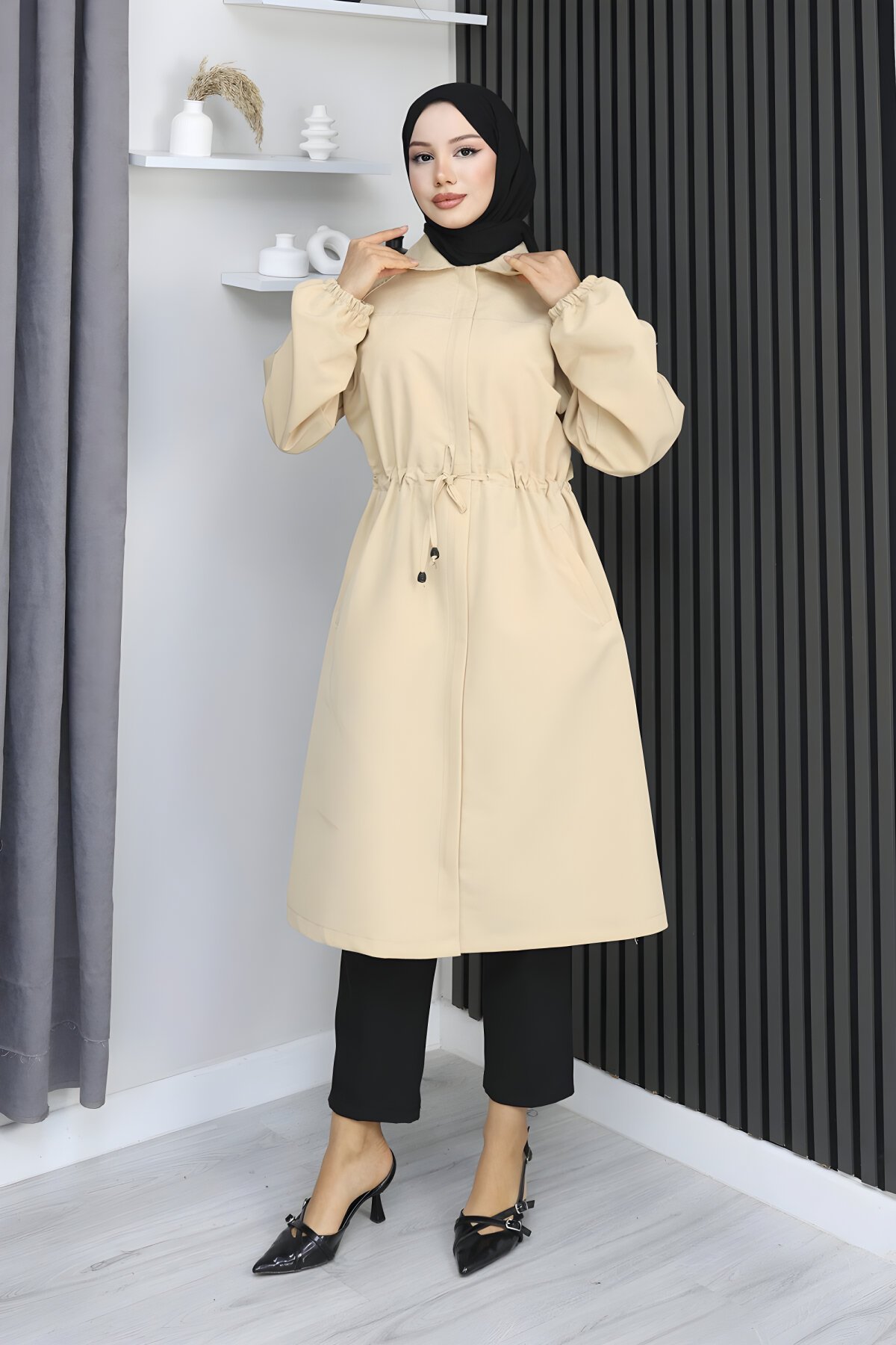 Stil sahibi kadınların tercihi Misskayle markasının en yeni koleksiyonundan Bej Gizli Patlı Trençkot modeli, Devr-i Tesettür güvencesiyle sizlerle. Şıklığı ve konforu birleştiren bu trençkot, gizli pat detayı sayesinde sade ve modern bir görünüm sunar. Tesettür giyimde vazgeçilmeziniz olacak.