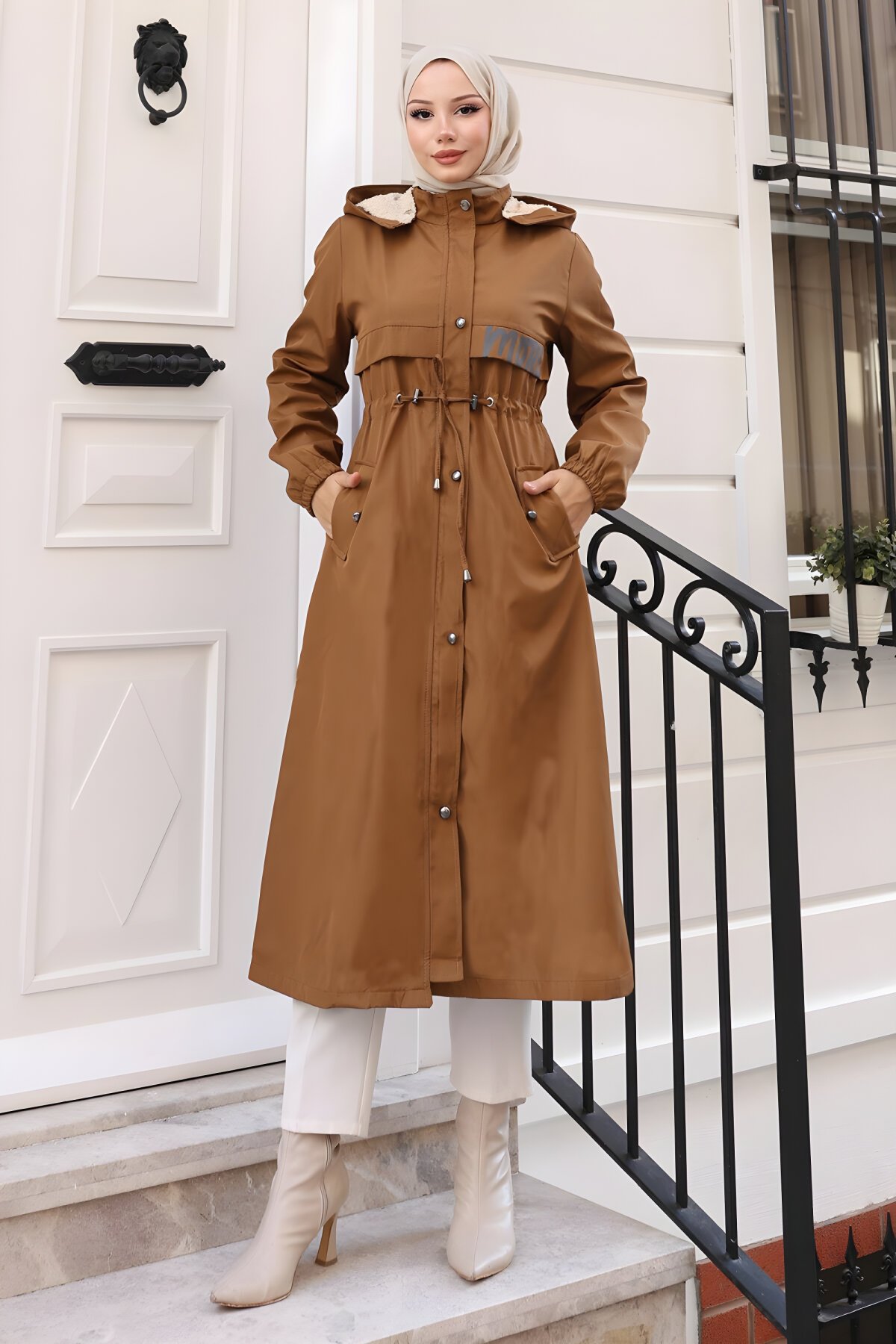 ModamihramYazı Detaylı Taba Kapüşonlu Mont