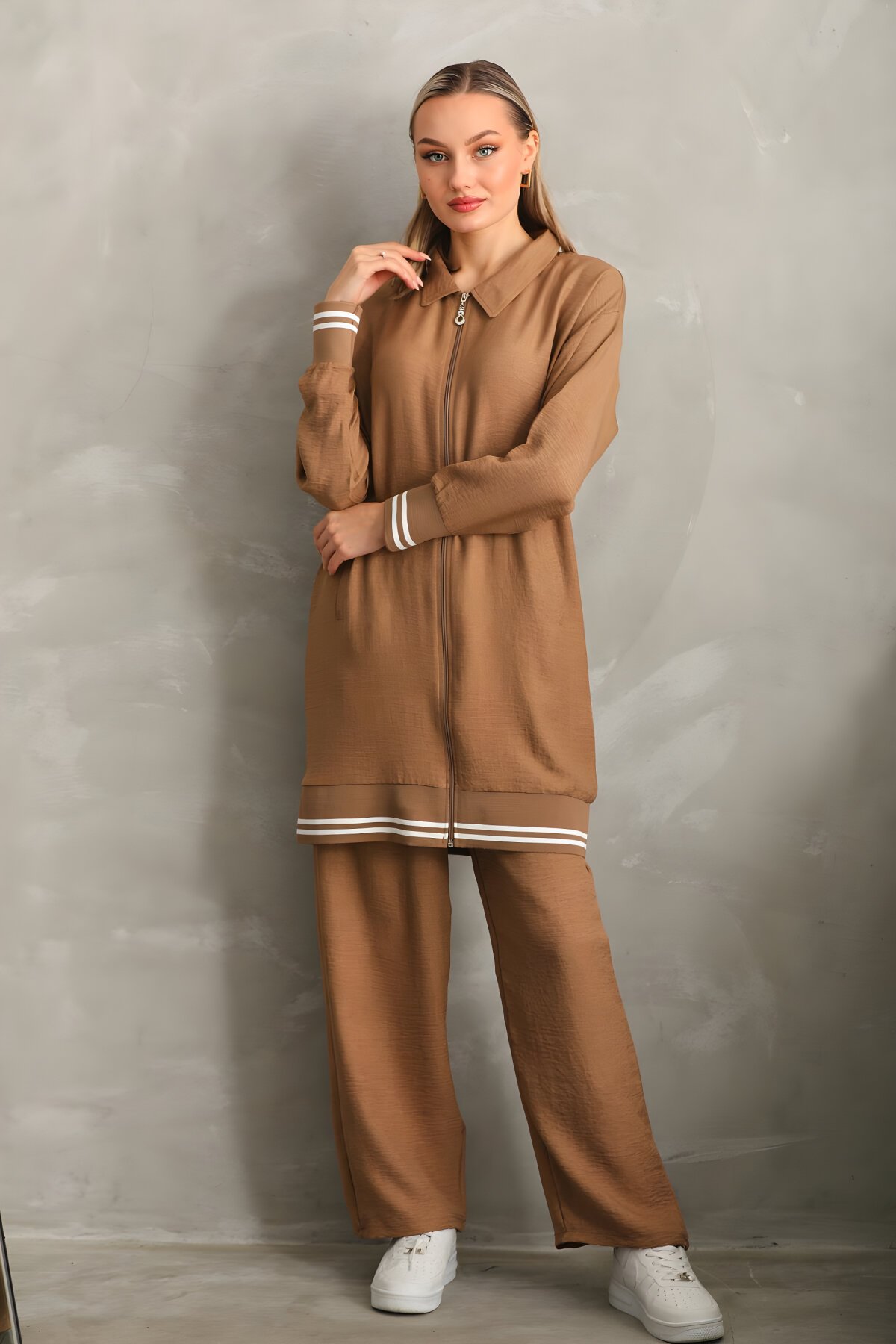 İkili Gömlek Pantolon Takım Vizon