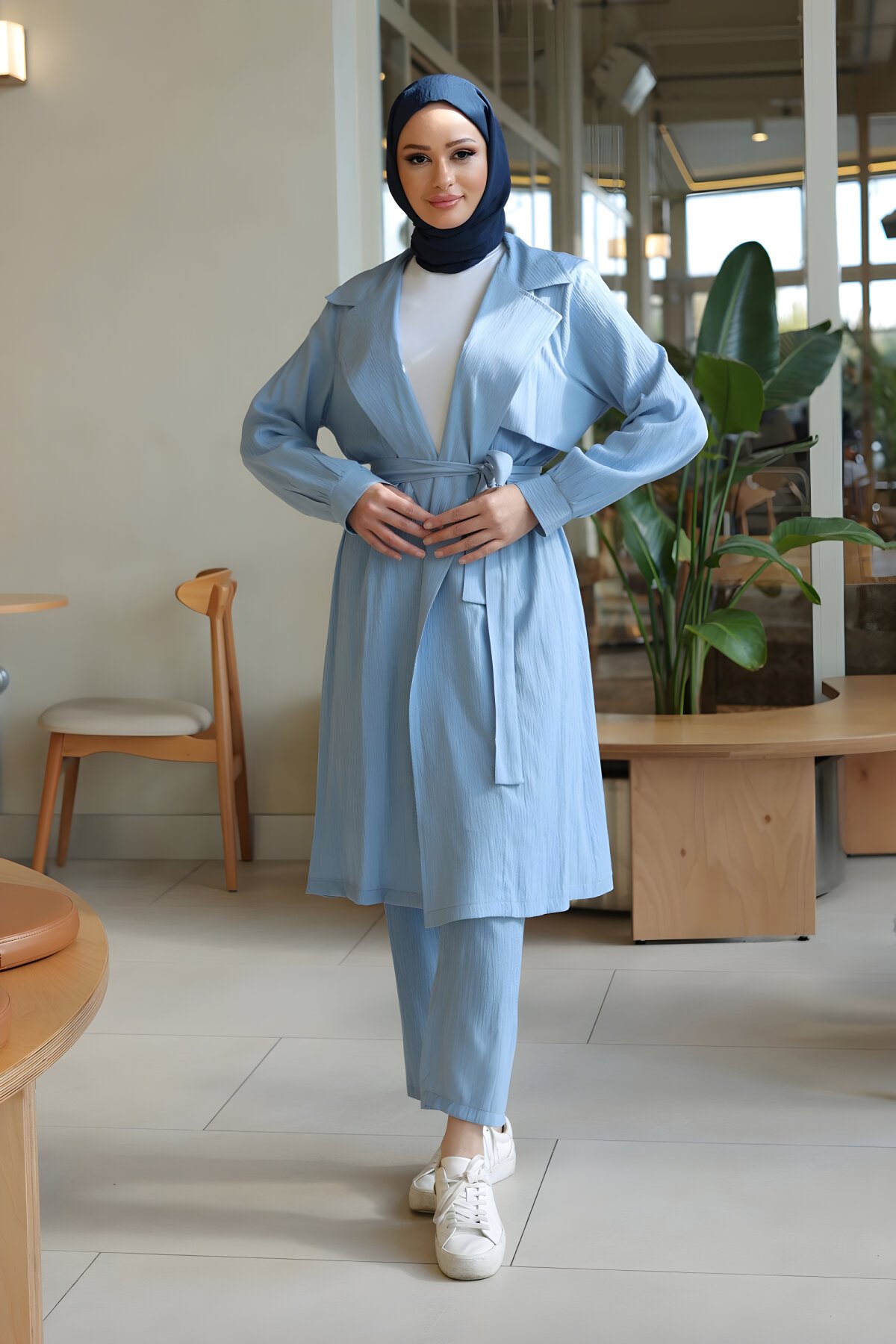 MisskayleBebe Mavi Ay Parça Detaylı İkili Tesettür Takım
