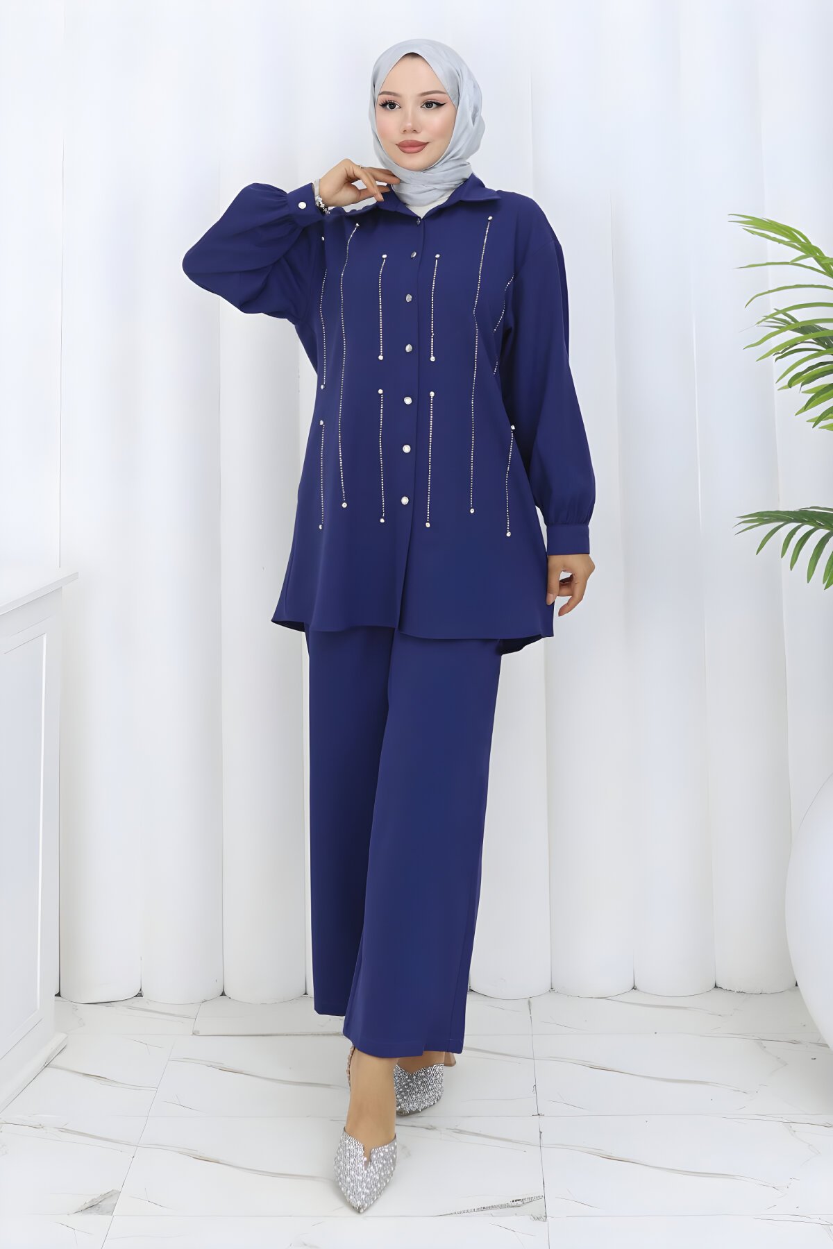 ModamihramTaş Detaylı İndigo İkili Tesettür Takım