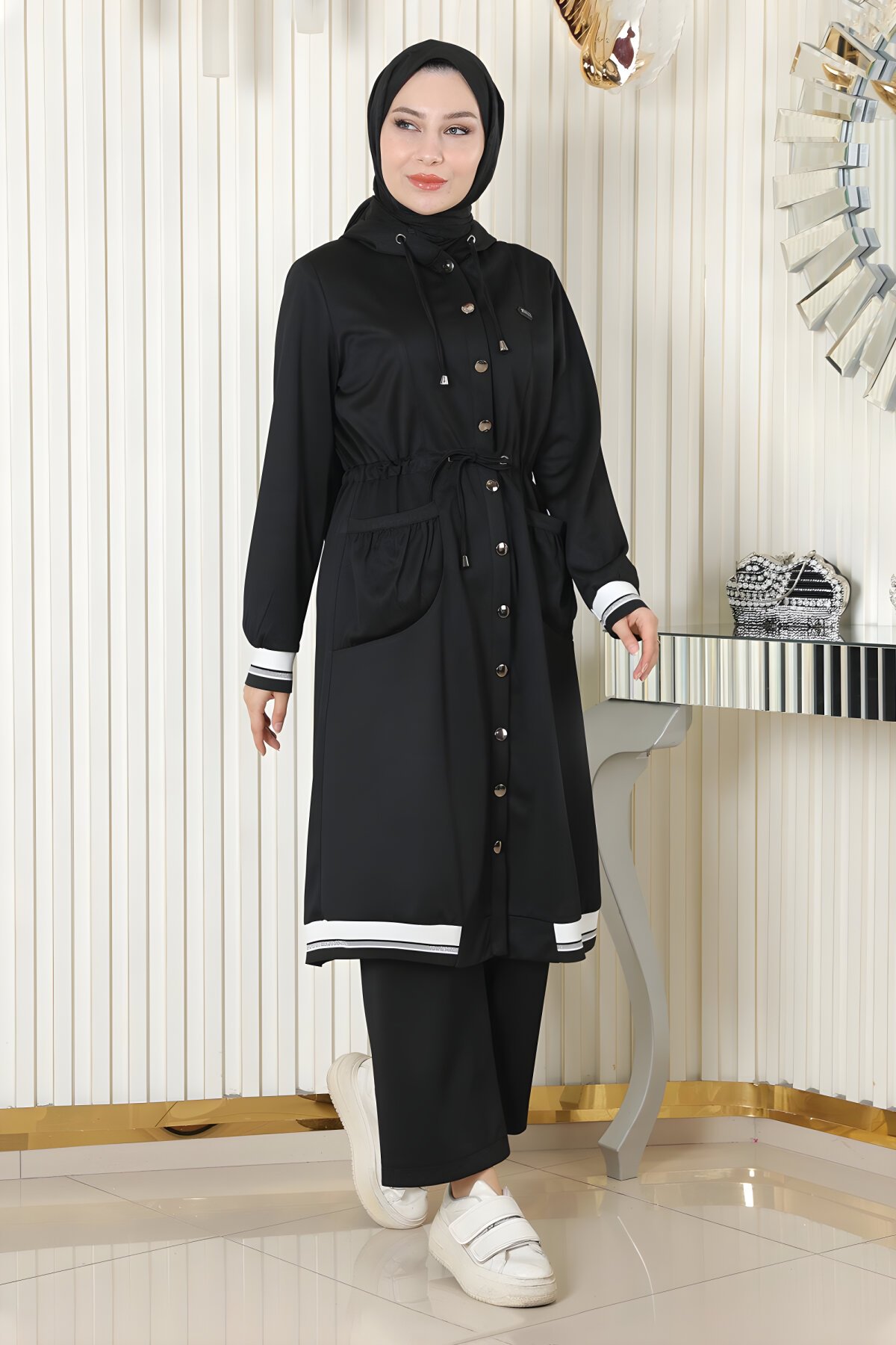 ModamihramKapüşonlu Ribanalı Siyah İkili Tesettür Takım