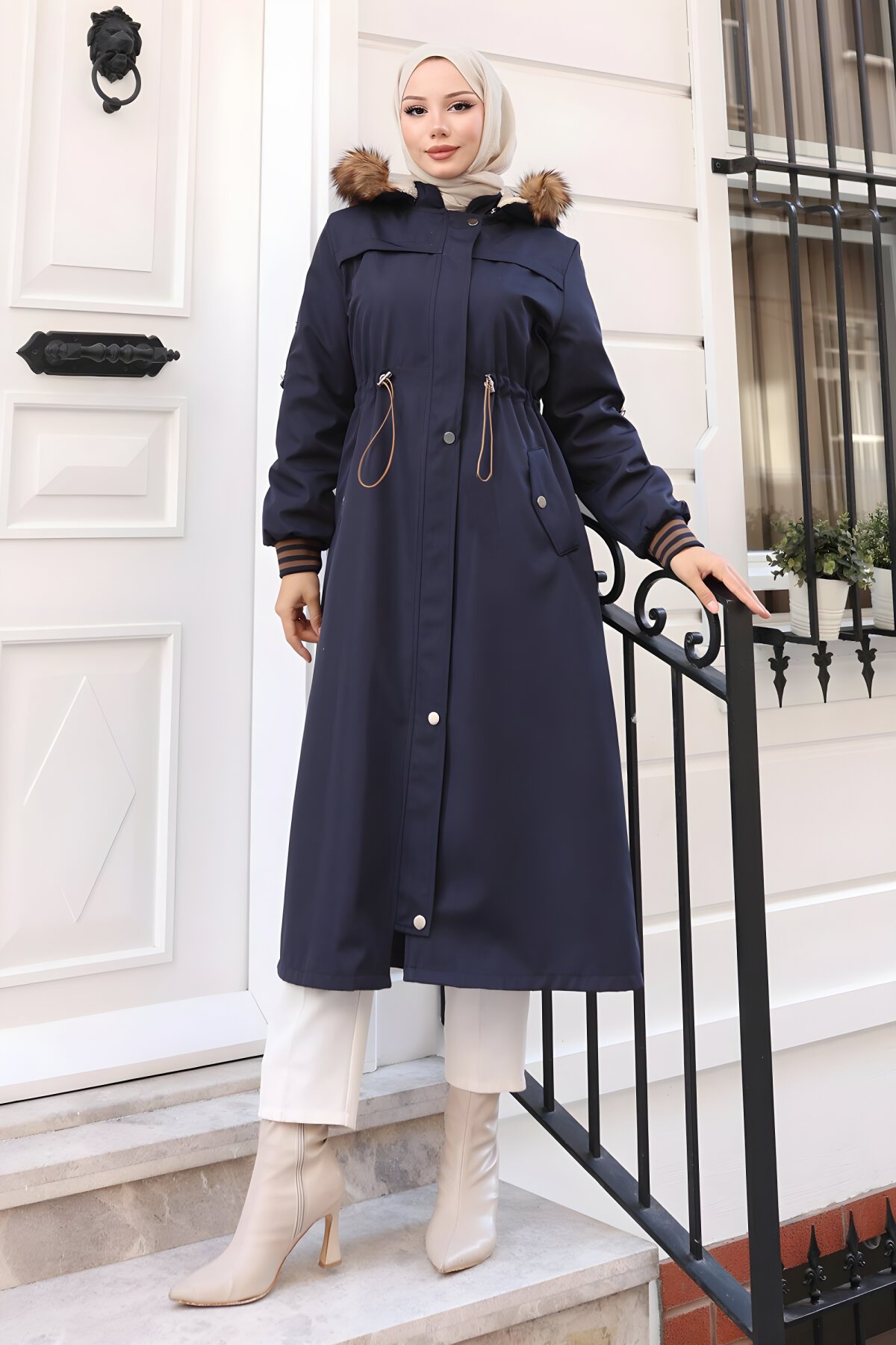 Ürün Özelliği : Yeni sezon tesettür moda ürünüdür. Kürk Astarlıdır. Önden kullanılabilir gizli fermuarı bulunmaktadır. Manşeti ribanalıdır. Beli bağcıklıdır. Cep mevcuttur. Kapşonu seyyardır. Ürün renginde konsept çekimlerinden dolayı ton farklılığı olabilir.