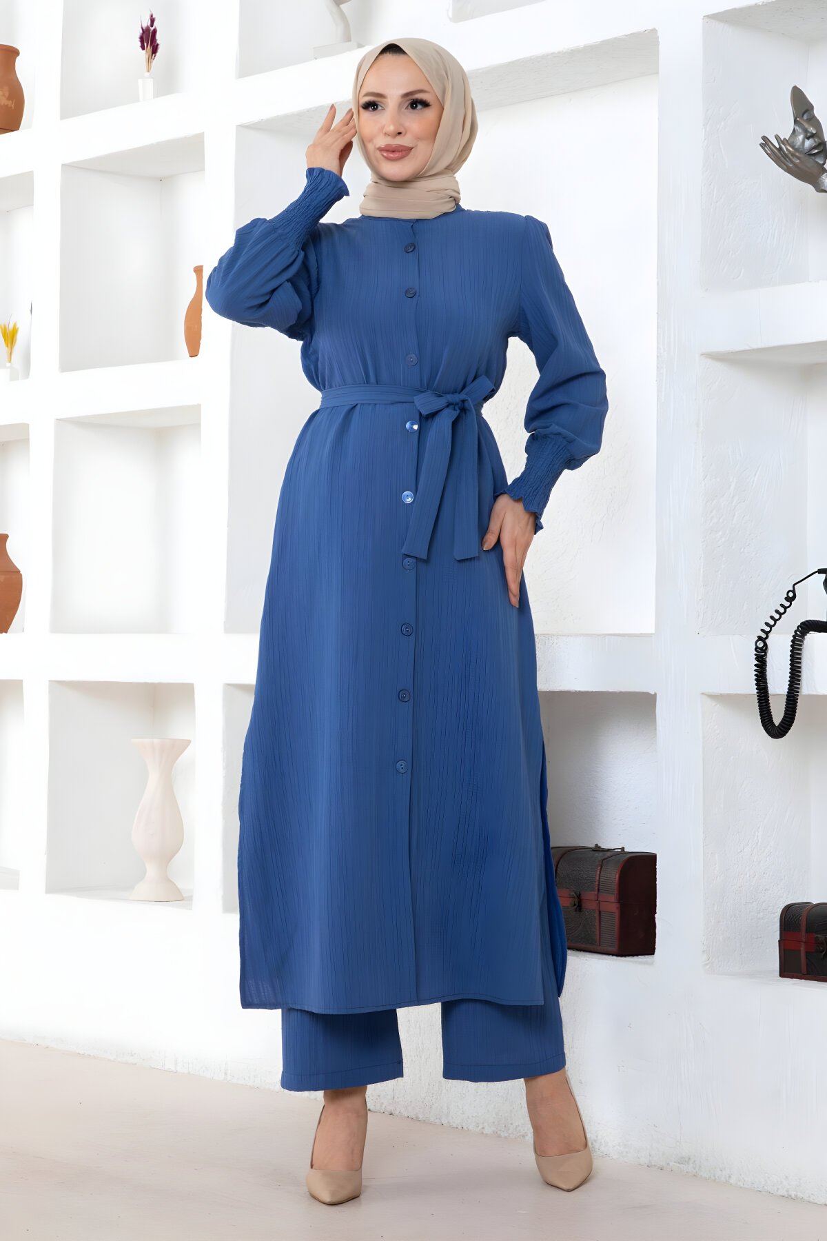 Modamihram markasının en yeni koleksiyonundan İndigo Yırtmaç Detaylı İkili Tesettür Takım, rahatlığı ve şıklığı bir araya getiriyor. Günlük kullanıma uygun, nefes alan kumaşı sayesinde dört mevsim tercih edilebilir. Devr-i Tesettür güvencesiyle sunulan bu modern takım, tesettür giyimde aradığınız konforu ve elegan görünümü tek parçada sunar.