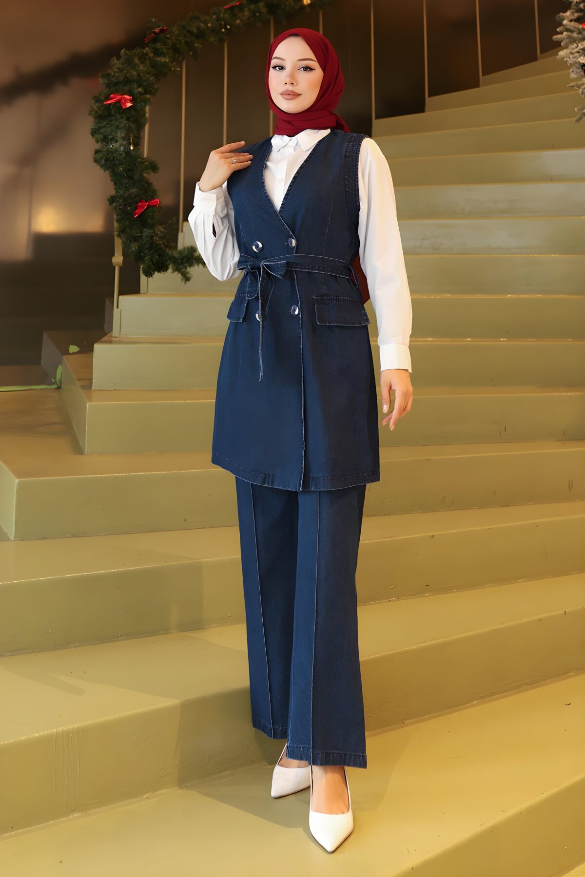 Modamihram’ın bu koyu mavi kot ikili takımı, geleneksel denim dokusunu modern ve sofistike bir silüetle birleştiriyor. Keskin hatları ve zarif detaylarıyla, her ortamda dikkat çekici ve özgüvenli bir duruş sergilemenizi sağlayan bu tasarım, gardırobunuzun en ikonik parçalarından biri olmaya aday.